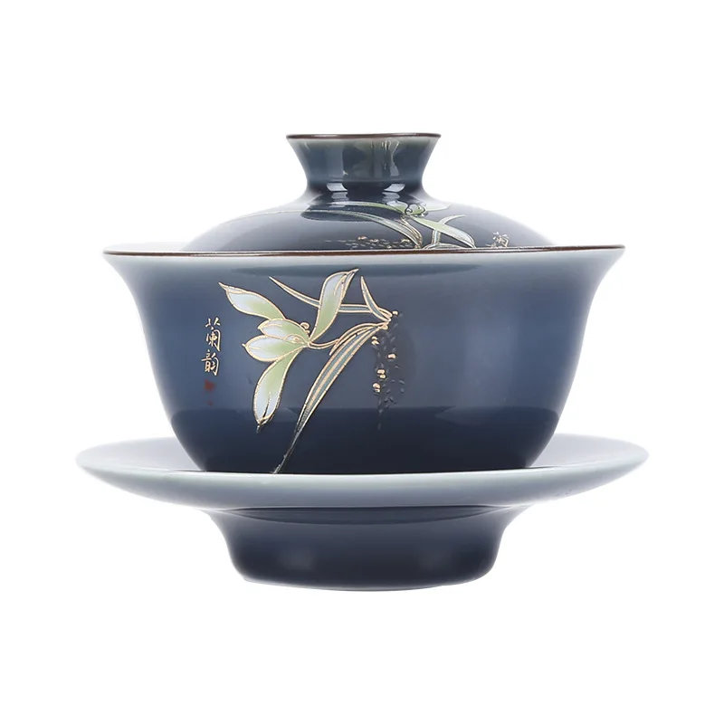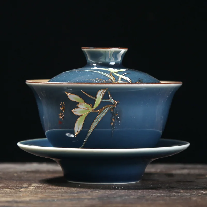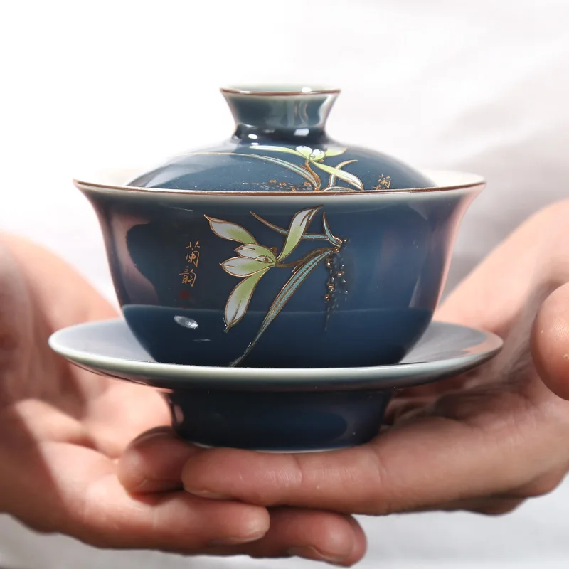 Special Offer Keramische Orchidee Zilveren Thee Set 999 Puur Zilver Cover Kom Ji Blue Kung Fu Thee Set Verguld Zilver Sancai Tea Kom Thee Cup Grote Siz Discount 14% Today!