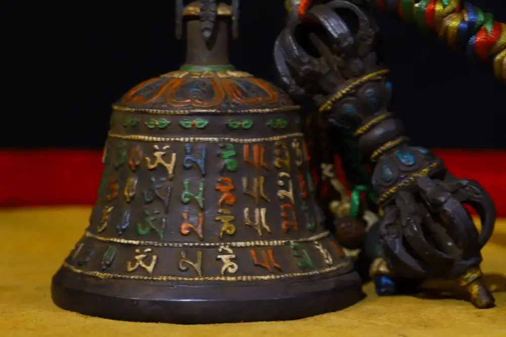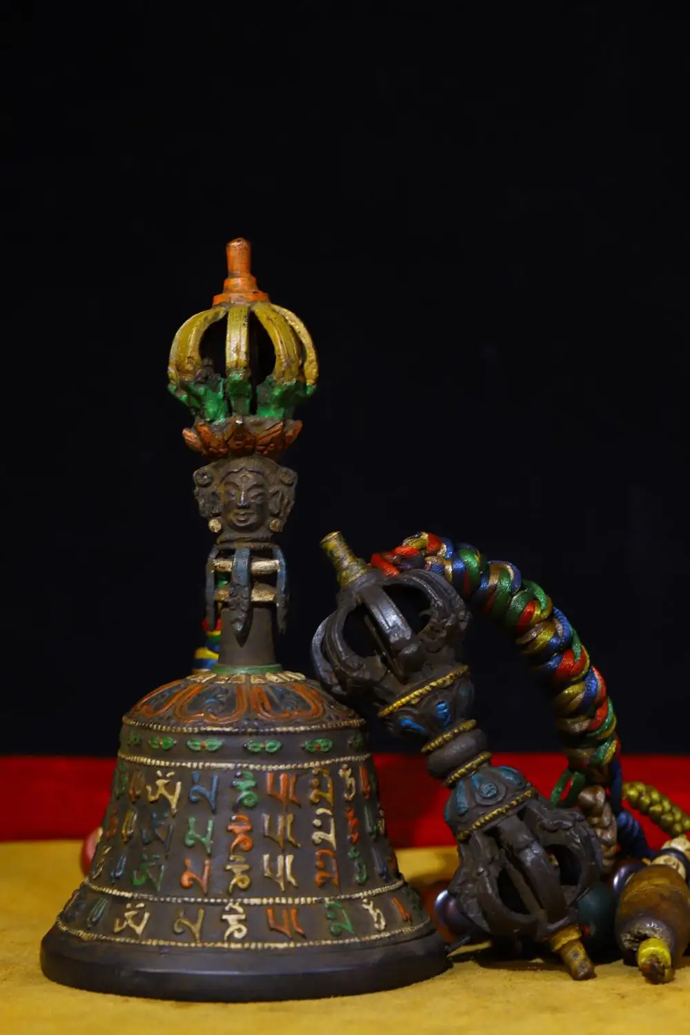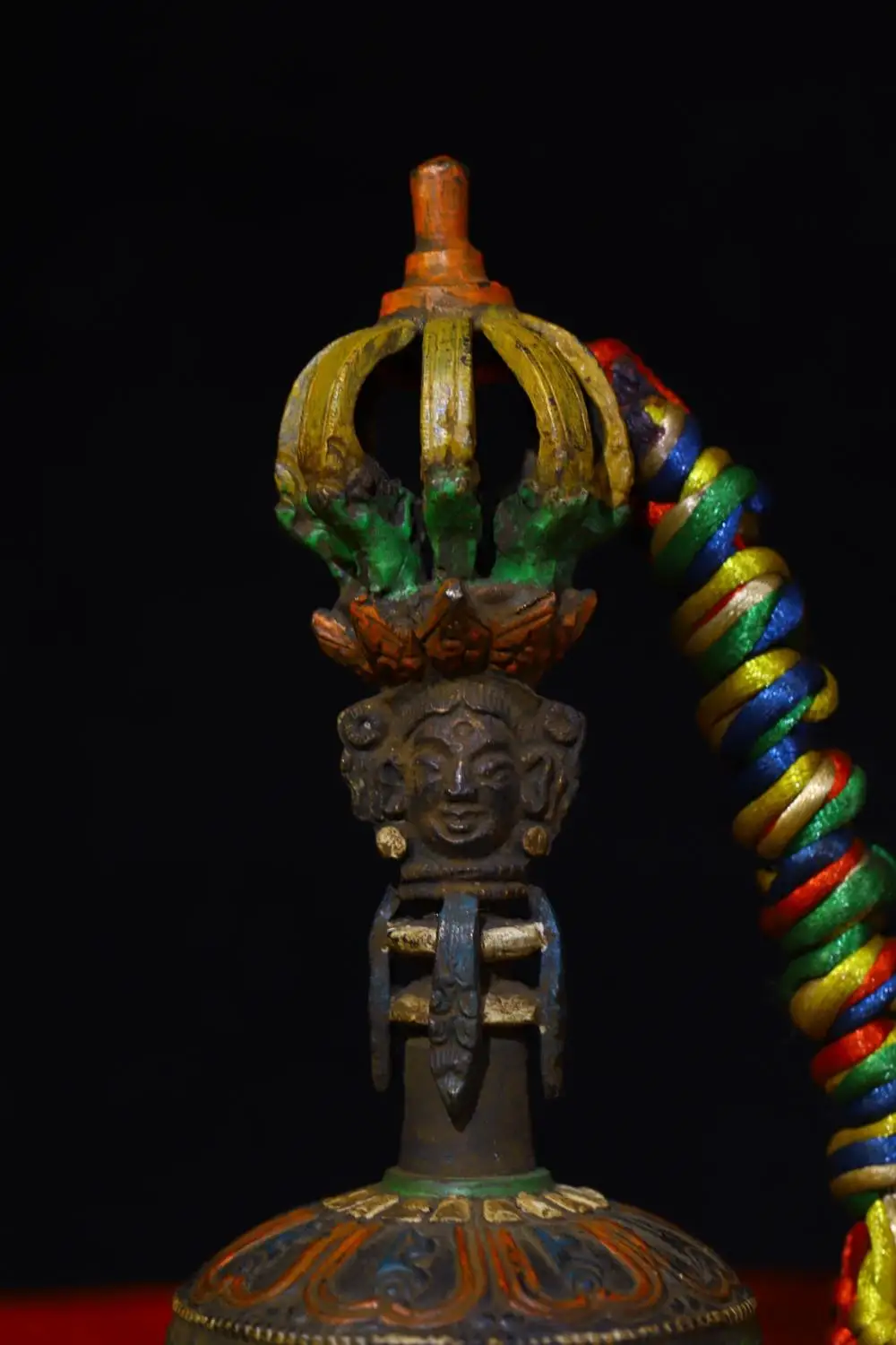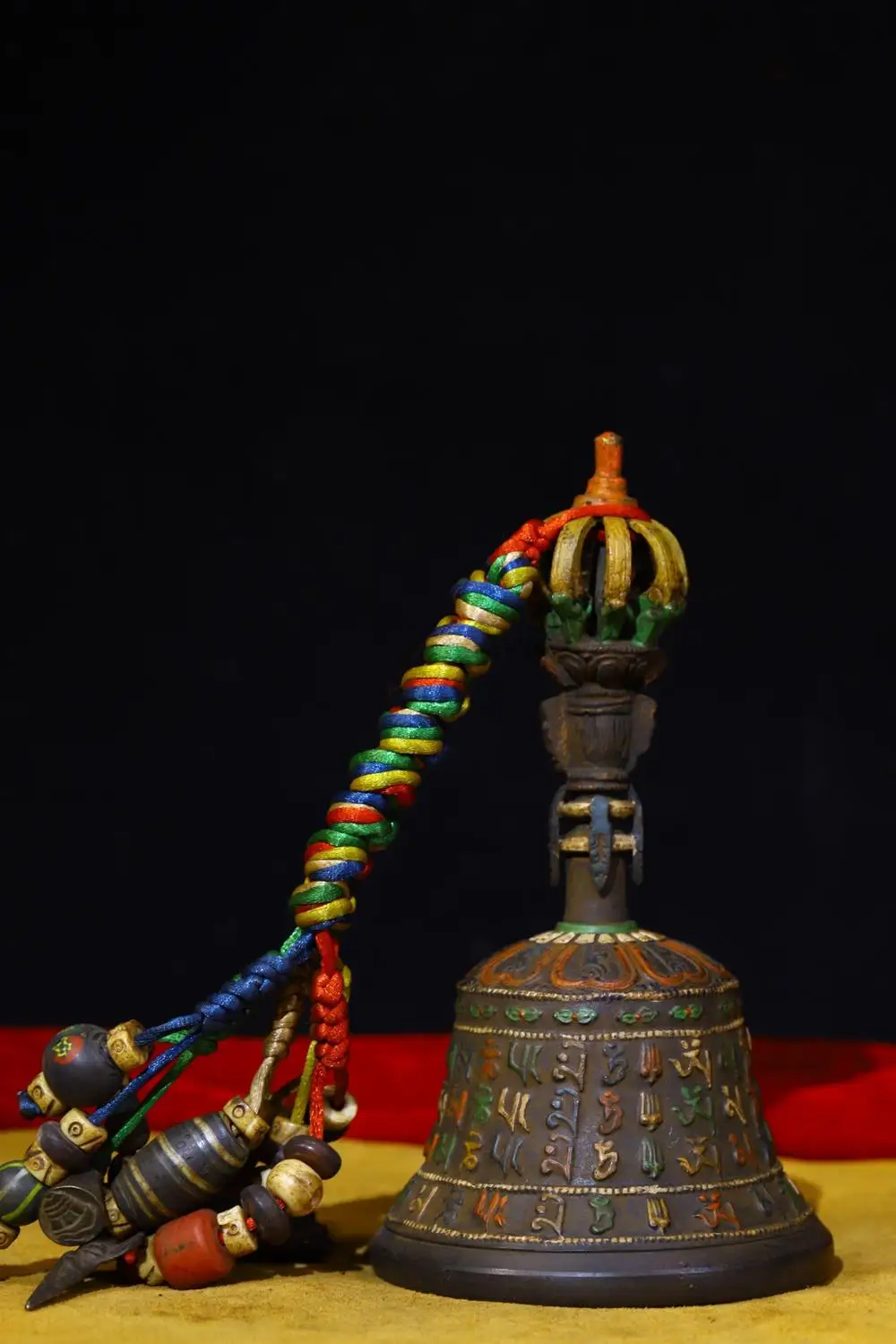 Product Name: 7 "Tibet Boeddhisme Tempel Oude Bronzen Tracing Oude Rammelaar Dorje Vajra Phurba Exorcism Weren Boze Geesten Buddha Bell Bells