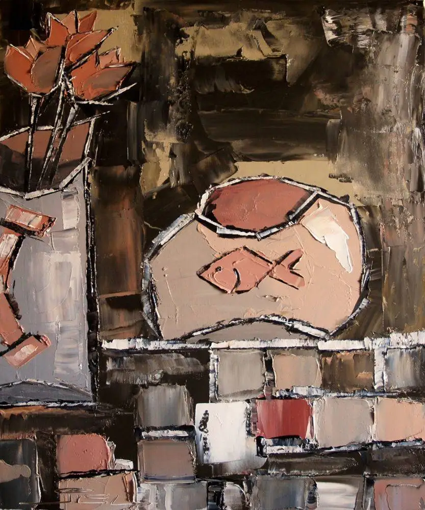🌘(15%OFF) Goede Kopen Moderne Abstracte Dier Schilderen Wall Art Voor Home Decor Vis In Aquarium Met Bloemen Atelier De Jiel Olie Reproducties Door Hand Goedkoop