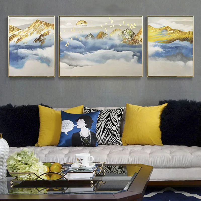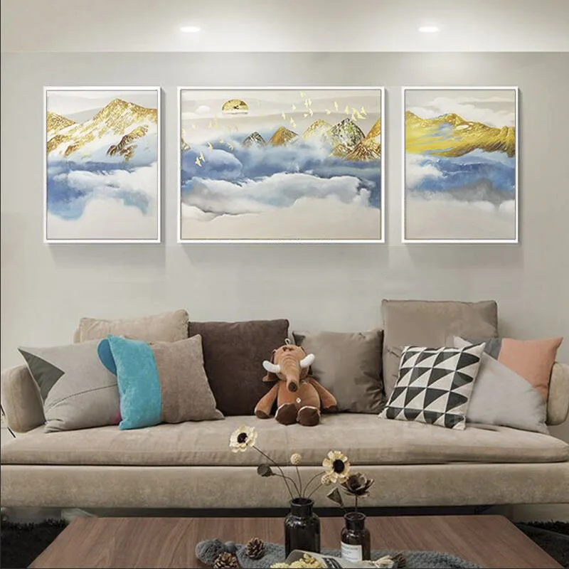 Product Name: 3 Stukken Decoratie Voor Thuis Canvas Schilderij Wall Art Foto Voor Woonkamer Thuis Wall Decor Originele Goud Blauw Acryl Textuur