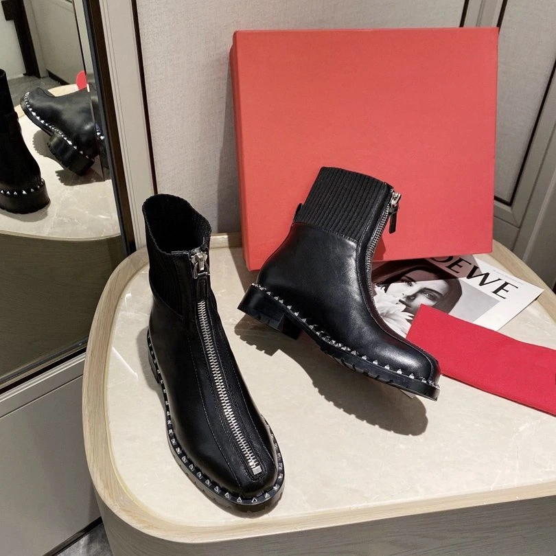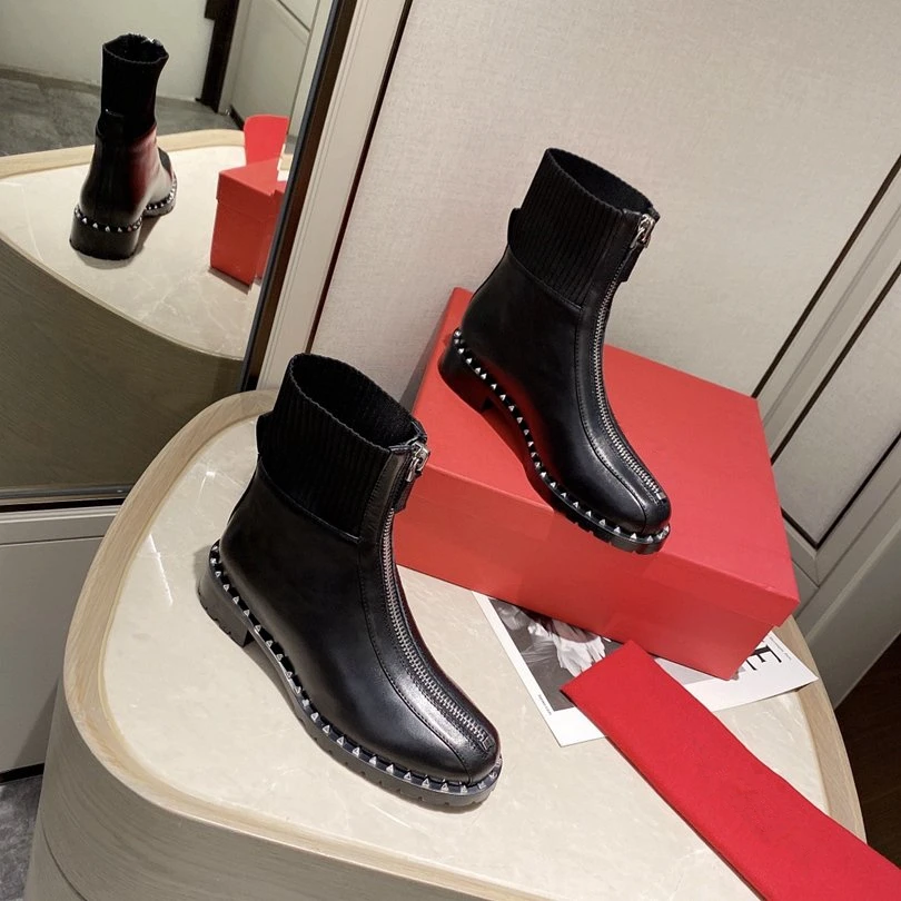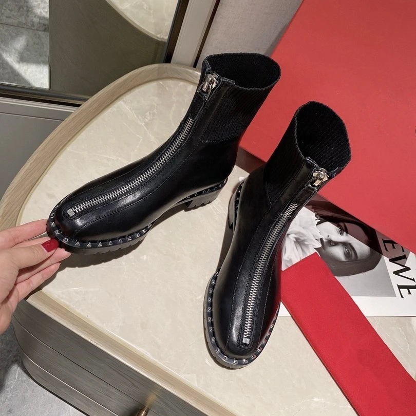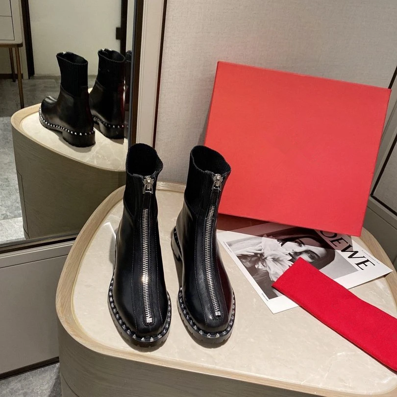 Special Offer Ritssluiting Patchwork Vrouwen Enkellaars Sokken Stretch Stof Vrouwen Korte Laarzen Runway Combat Vrouwen Winter Laarzen Martin Laarzen Vrouwen Discount 30% Today!