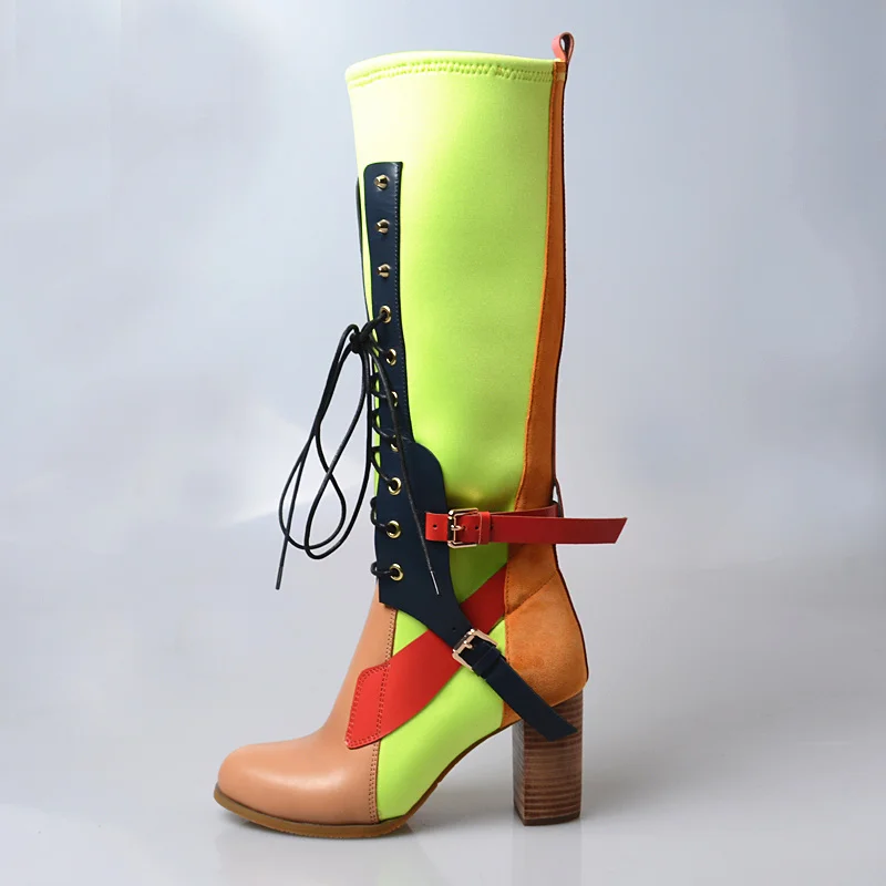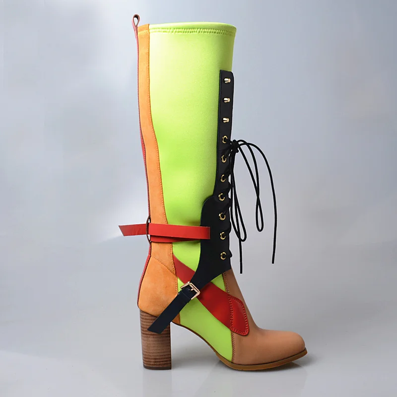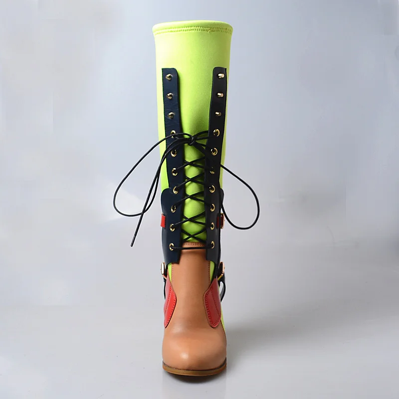 Product Name: Mabaiwan Mode Vrouwen Bruine Hoge Hak Schoenen Echt Leer Knie Hoge Winter Stretch Stof Laarzen Vrouw Comfortabele Warm Pompen