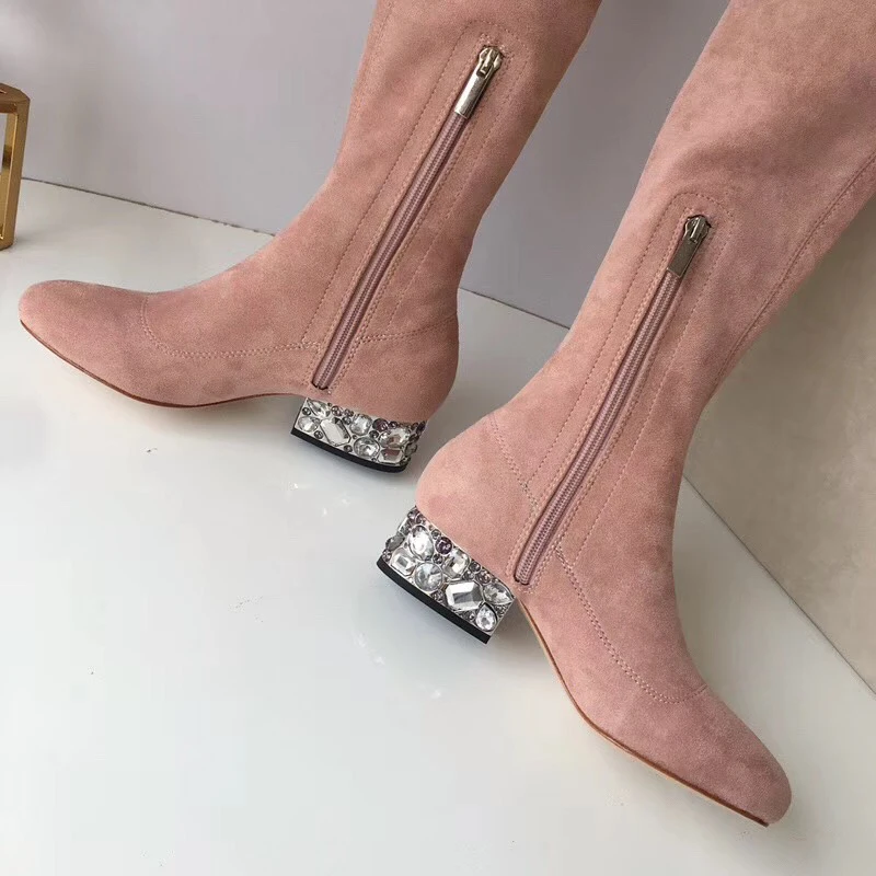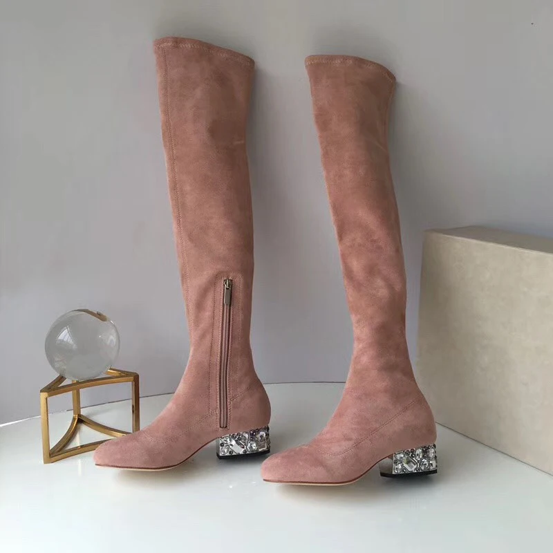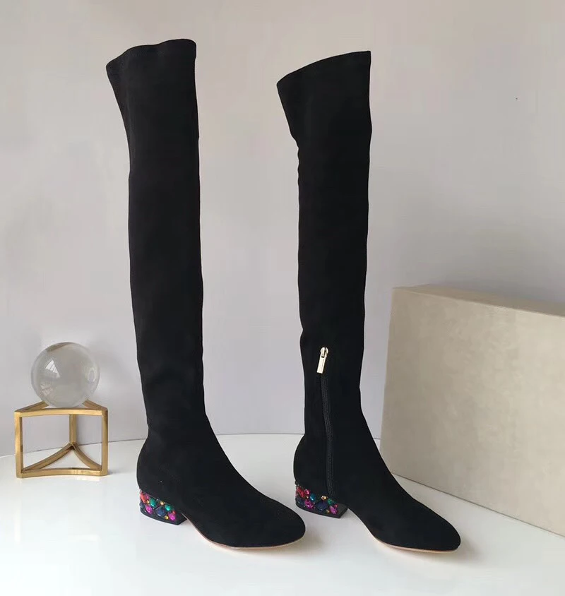 Special Offer 2018 Herfst En Winter De Nieuwste Vrouwen Schoenen Over De Knie Laarzen Vrouwen Lederen Steentjes Met Een Dikke Dunne Stretch Fashio Discount 40% Today!