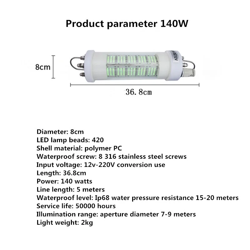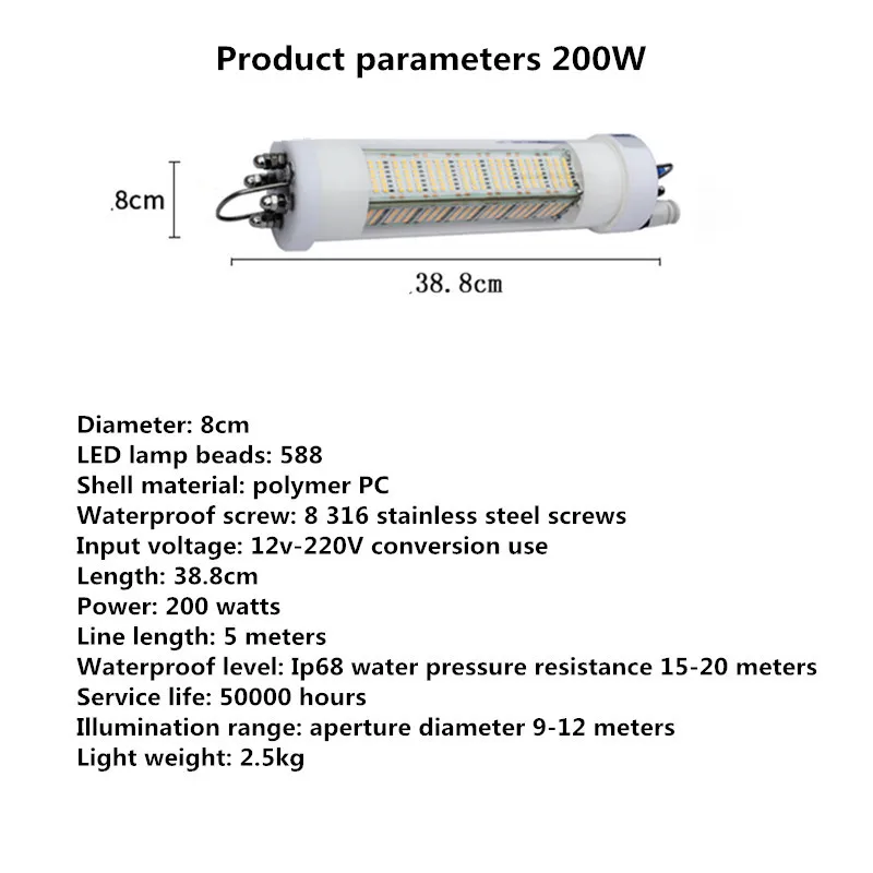 Product Name: 12 V Deep Drop Fishing Licht Onderwater Vissen Licht Lokt Vis Finder Lamp Trekt Garnalen Inktvis Krill 200W 300W Nacht Vissen