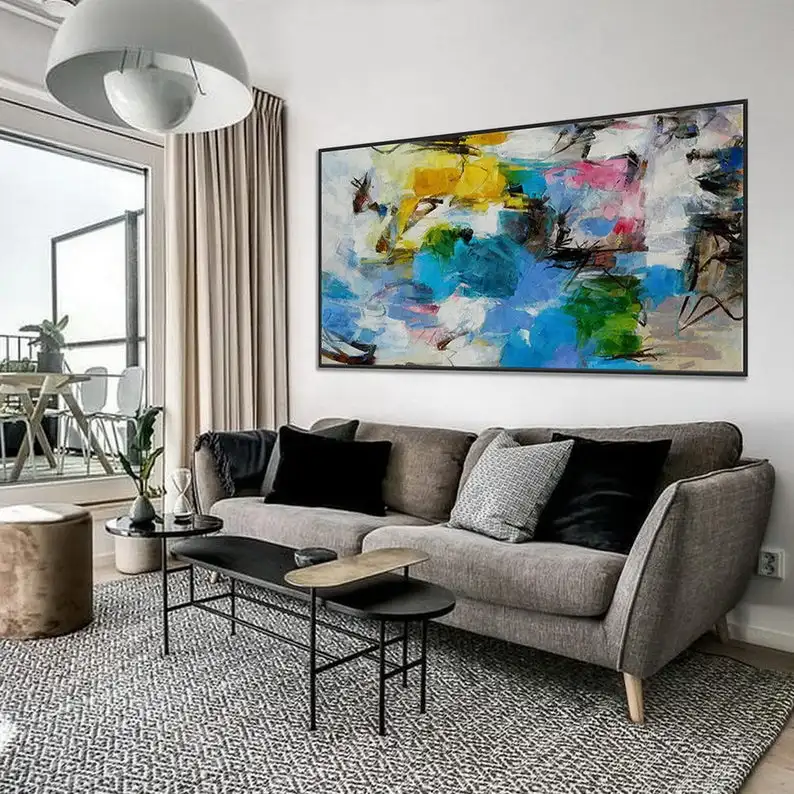 Product Name: Abstract Schilderen Grote Muur Art Kleurrijke Moderne Brush Stroke Oversize Panoramisch Brede Abstract Canvas Olieverf Home Decor