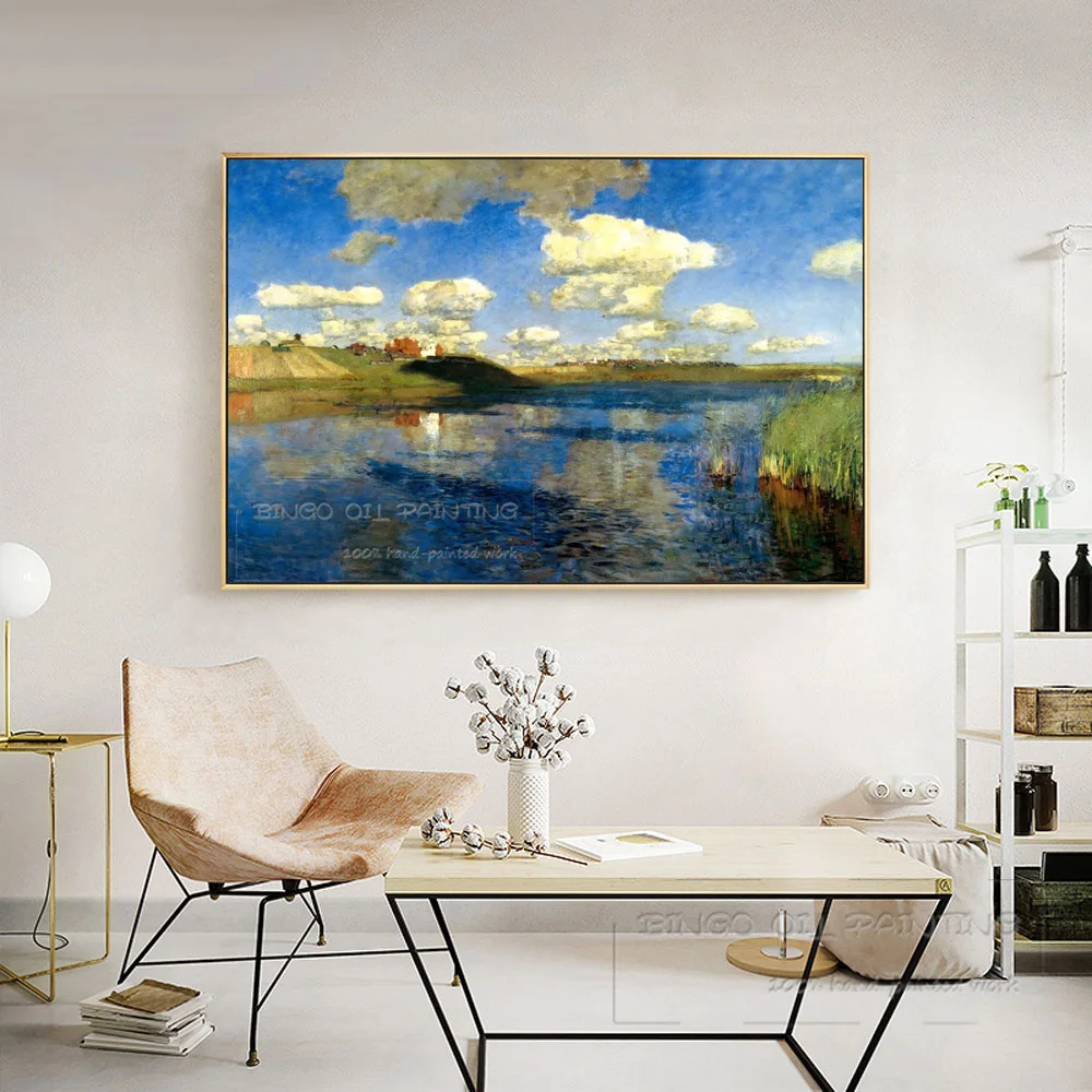 Special Offer Russische Beroemde Kunstenaar Levitan Lake Olieverf Reproduceren Russisch Olieverfschilderij Mooie Blauwe Lake Olieverf Voor Muur Decor Discount 52% Today!