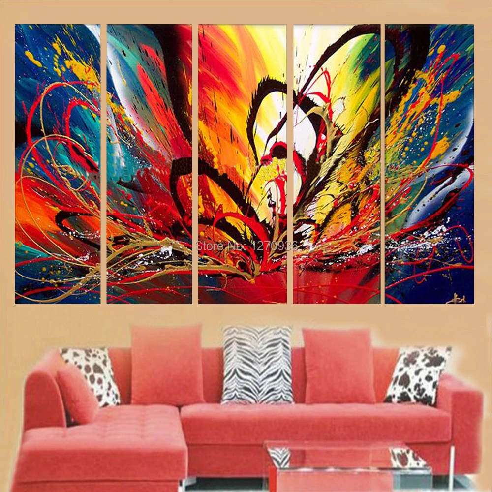 Special Offer Groothandel Hoge Kwaliteit 5 Stuks Abstracte Groep Schilderijen Voor Wanddecoratie Heldere Kleur Moderne Olie Foto Voor Woonkamer Discount 55% Today!