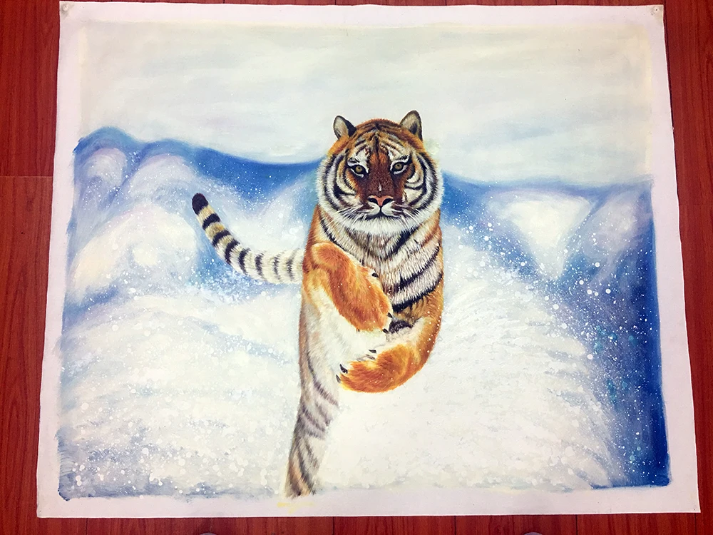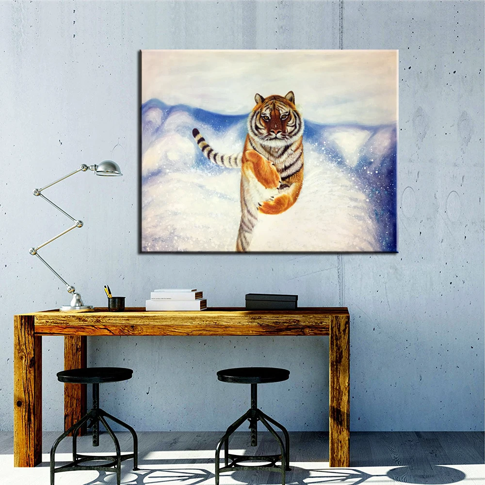 Product Name: Handgeschilderde Tijger Running In De Sneeuw Schilderen Voor Kamer Muur Decor Realistische Hoge Kwaliteit Animal Olieverfschilderij Art