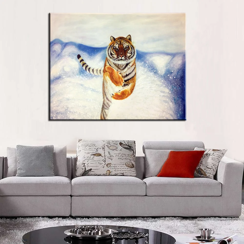 ๐ถ(55%OFF) Kopen Goedkoop Handgeschilderde Tijger Running In De Sneeuw Schilderen Voor Kamer Muur Decor Realistische Hoge Kwaliteit Animal Olieverfschilderij Art Prijs