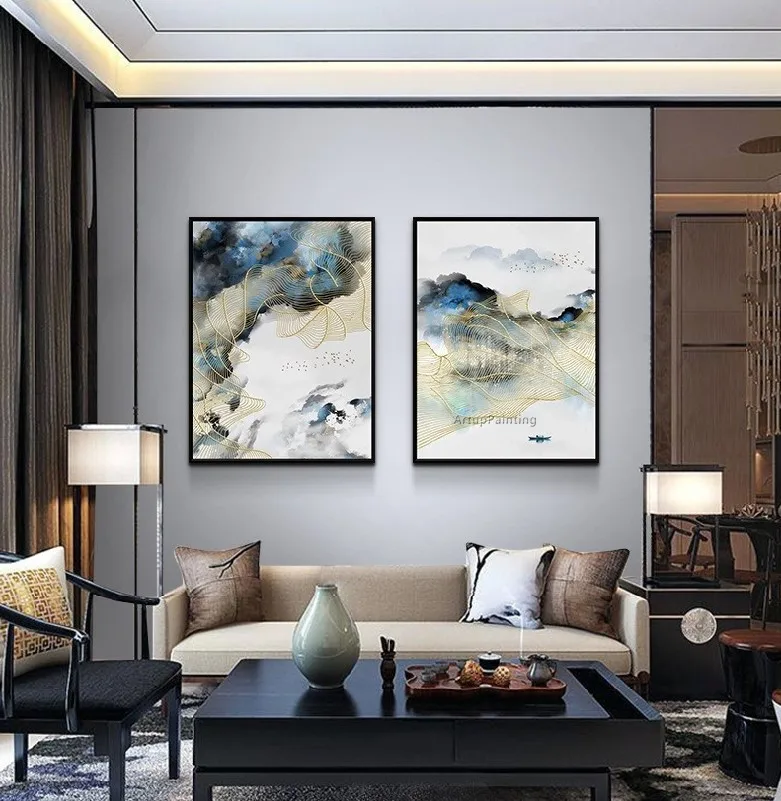 🕢(OFF) Kopen Goedkoop Moderne Abstracte Blauwe Canvas Olieverf Goud Lijn Hand Painted Wall Art Foto Voor Woonkamer Hal Home Decor Cuadros Prijs