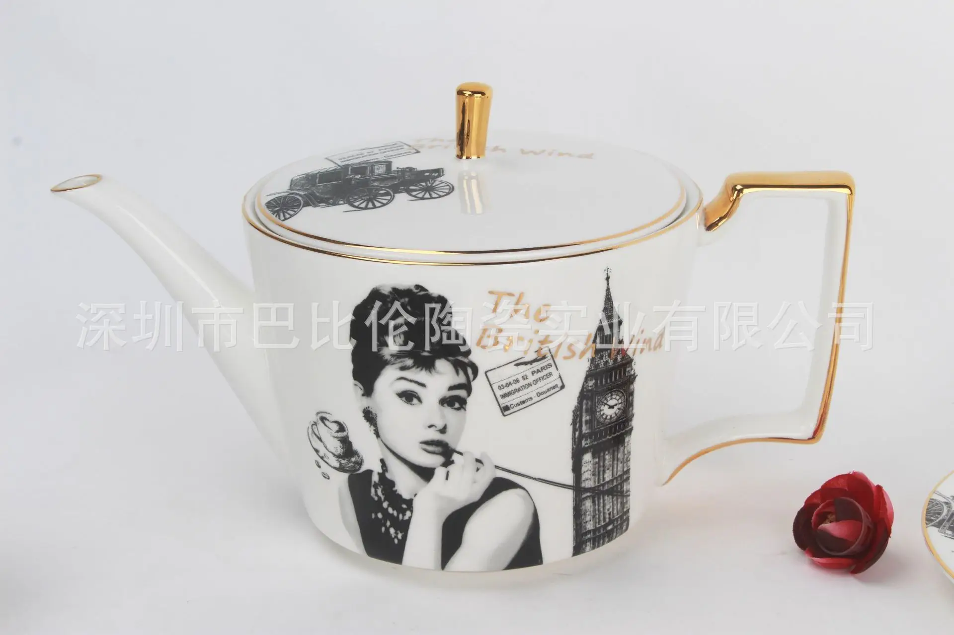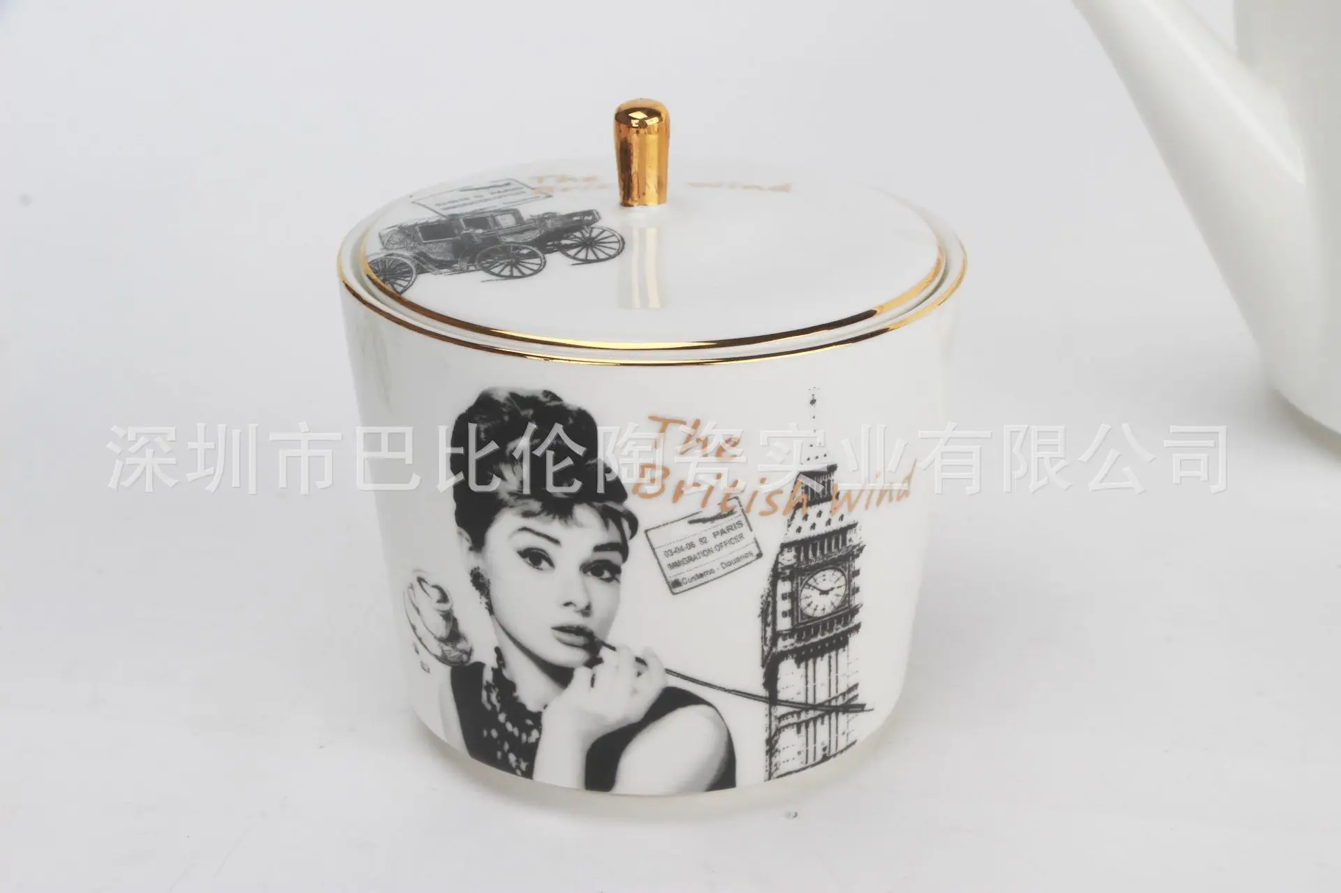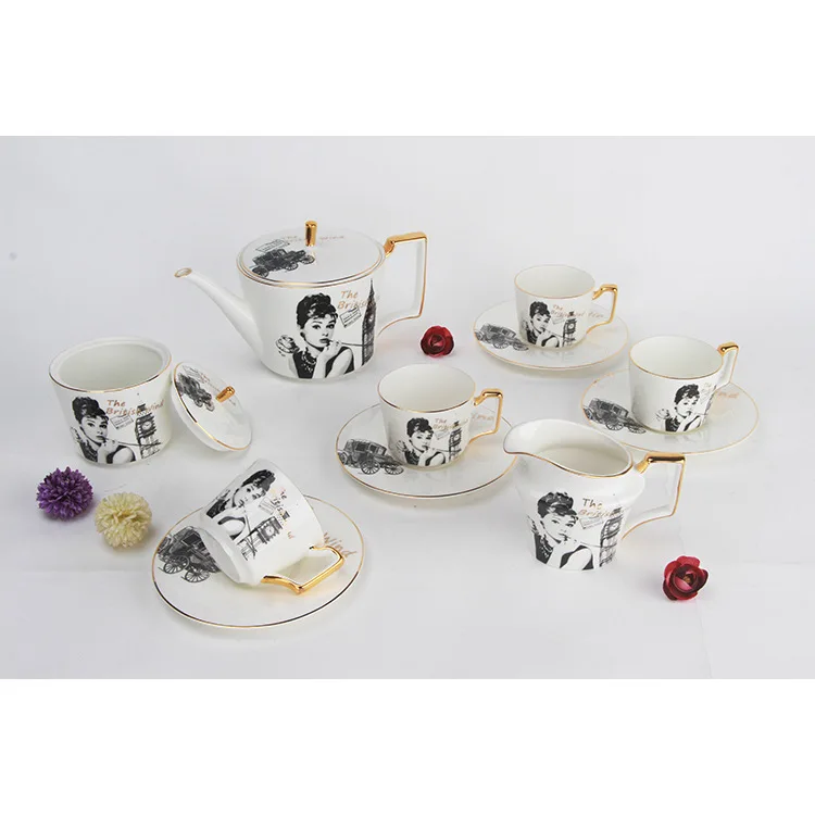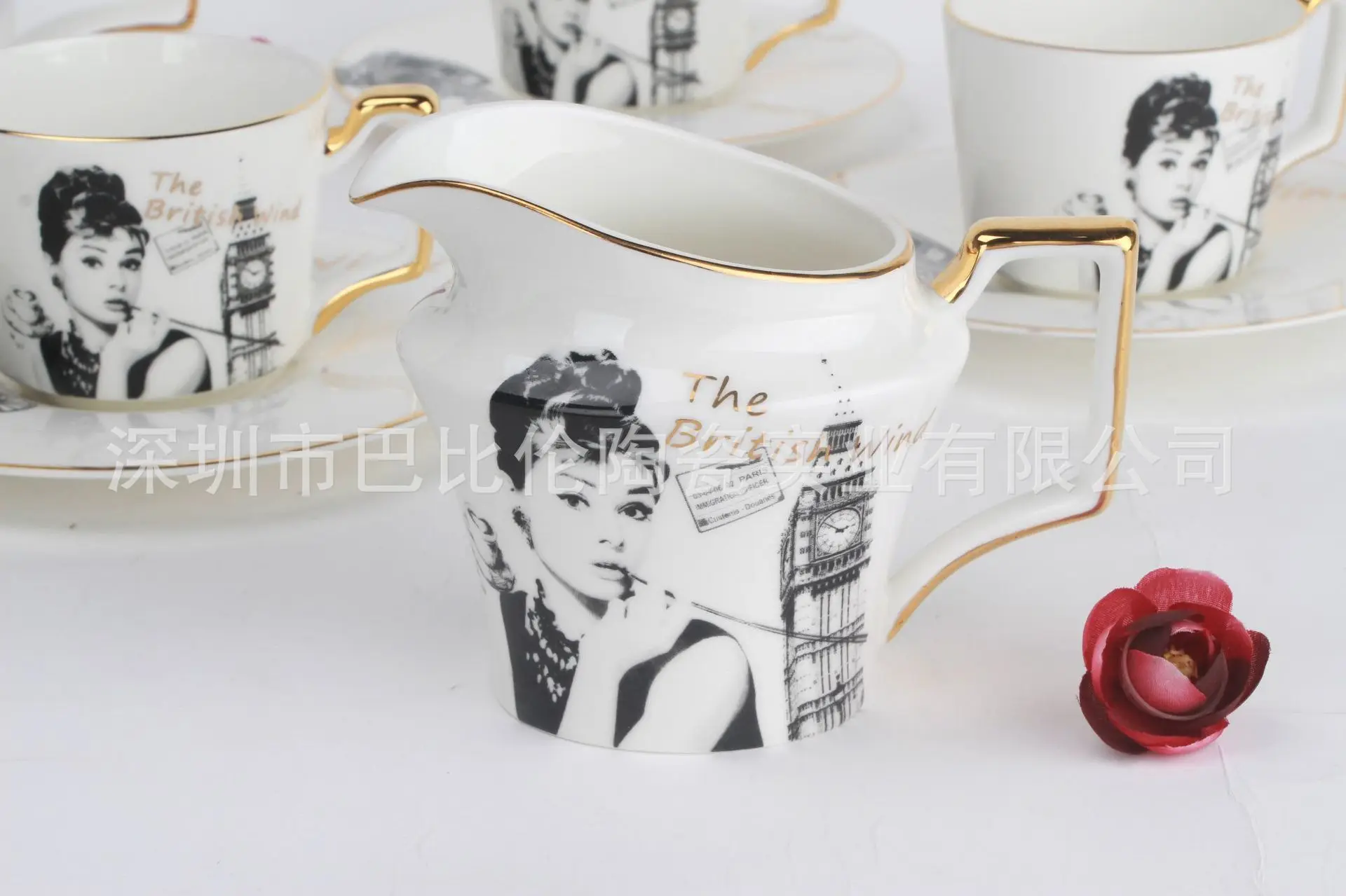 Product Name: Bone China Koffie Service Pak Keramiek Theepot Hertz Basis Trace EEN Ontwerp In Goud Side Cup Schotel Afternoon Tea Shop