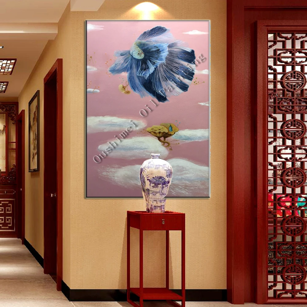 Product Name: Originele Handgeschilderde Museum Kwaliteit Goudvis Olieverfschilderij Realistische Schilderkunst Foto Muur Dieren Vis Olieverfschilderijen