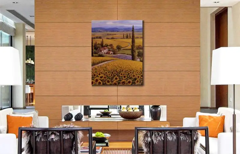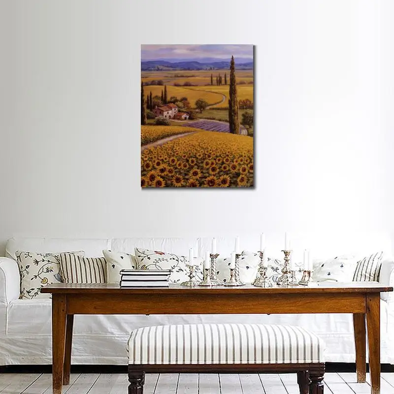 Product Name: Mediterrane Landschap Handgemaakte Olieverfschilderijen Zonnebloem Veld Moderne Kunst Bloem Schilderij Voor Muur Decor