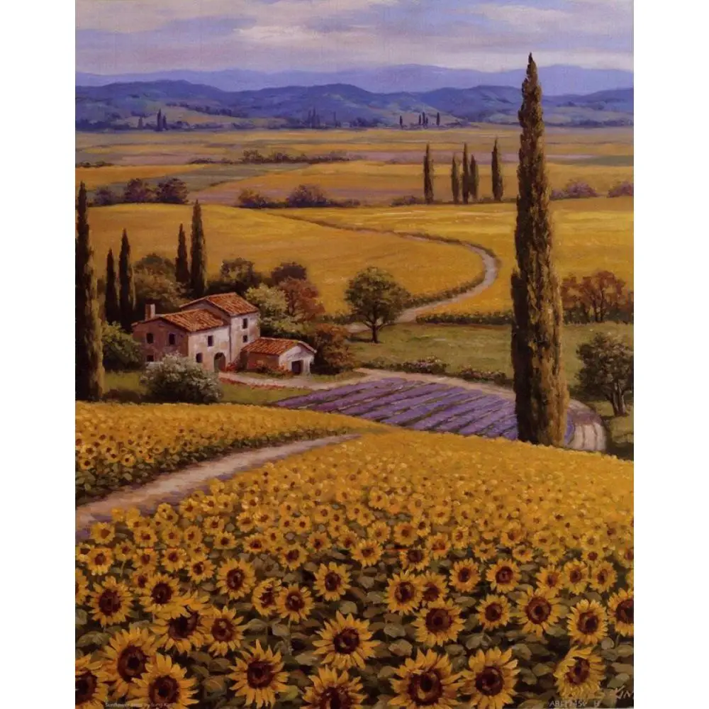 🌎(14%OFF) Kopen Goedkoop Mediterrane Landschap Handgemaakte Olieverfschilderijen Zonnebloem Veld Moderne Kunst Bloem Schilderij Voor Muur Decor Prijs