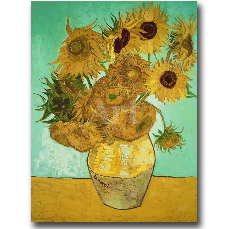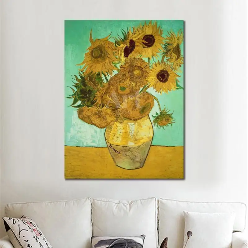 ☂️(18%OFF) Kopen Goedkoop Bestseller Wall Art Olieverf Vincent Van Gogh Zonnebloemen Tegen Groene Achtergrond Hand Geschilderd Canvas Reproductie Kwaliteit Online