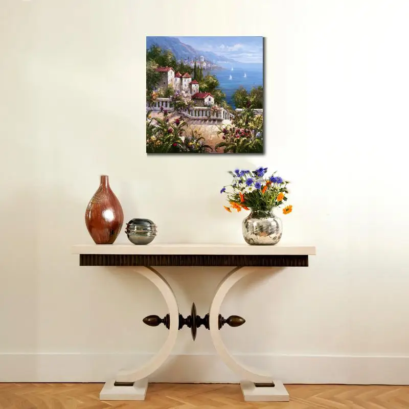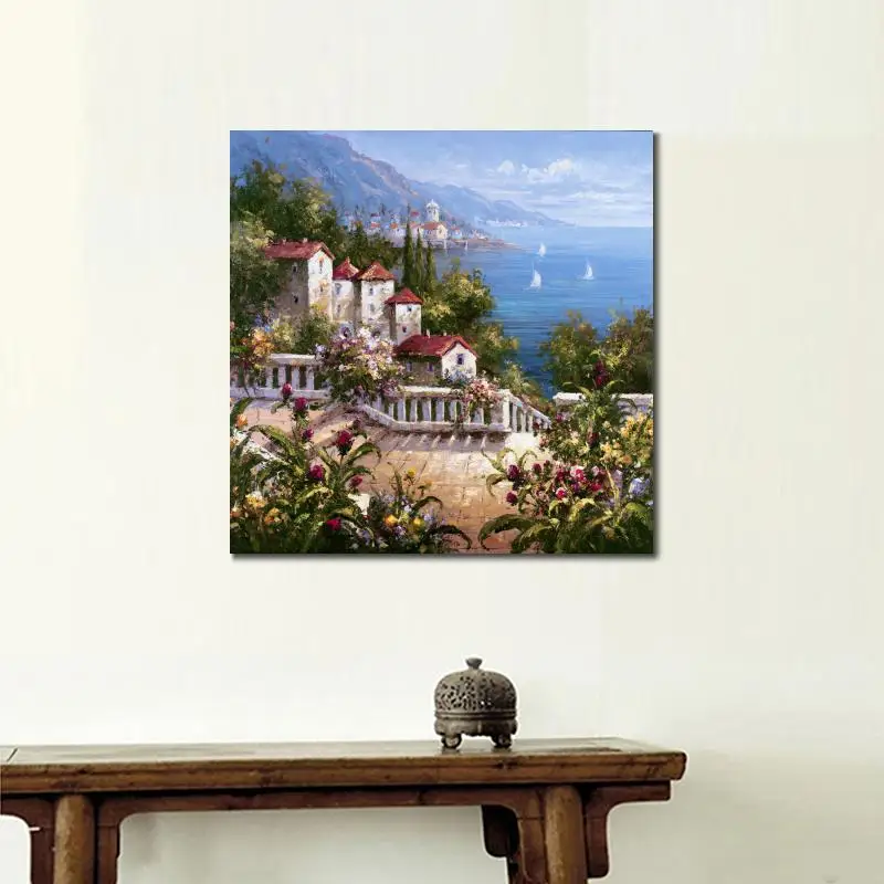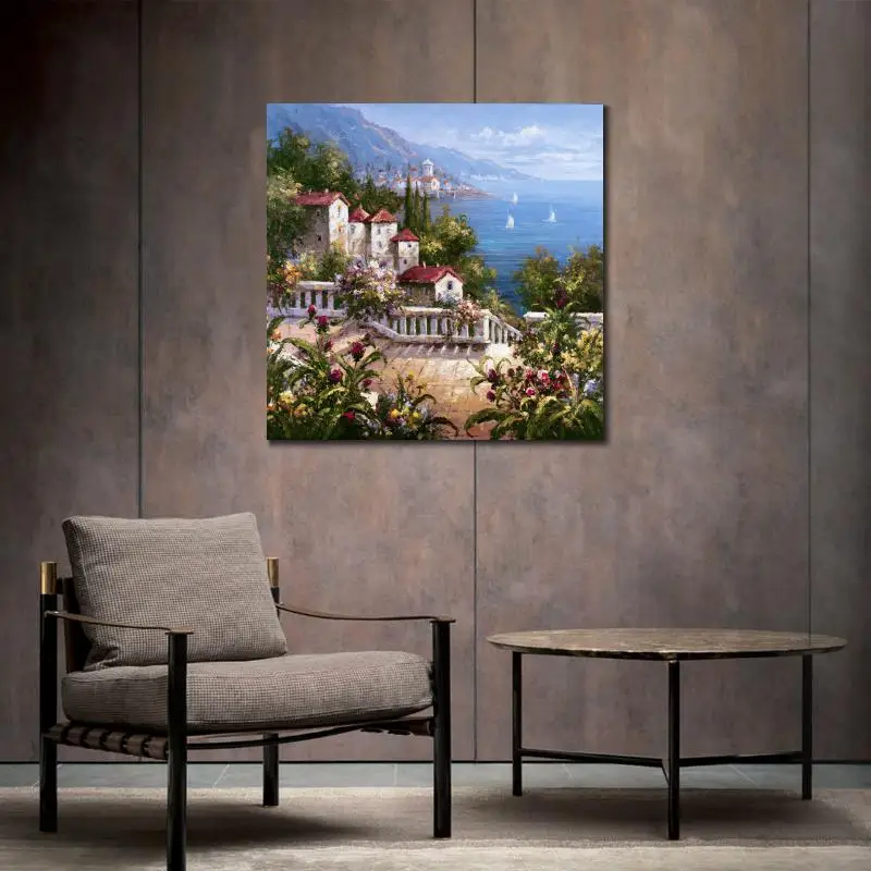 Product Name: Office Wall Art Mediterrane Bogen Dorp Landschappen Olieverfschilderijen Handgeschilderde Canvas Zeegezichten Foto