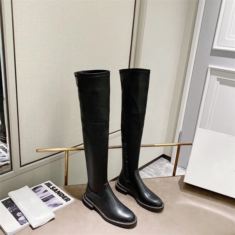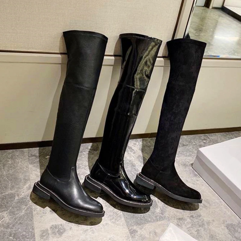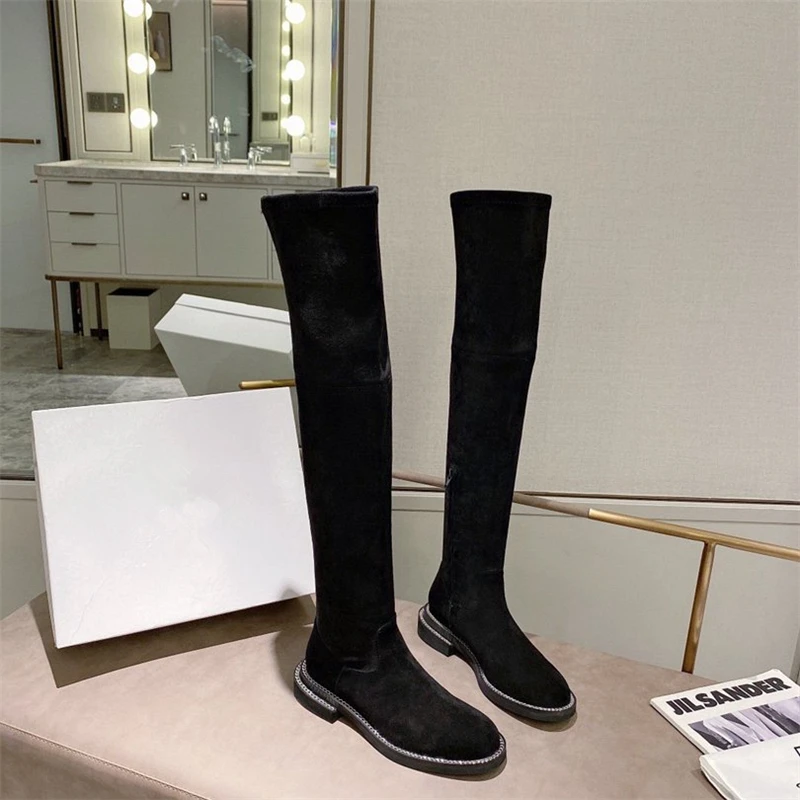 Product Name: Mentale Keten Vrouwen Lange Laarzen Luxe Merk Echt Suede Leer Vrouwen Over De Knie Laarzen Slim Stretch Herfst Winter Laarzen Meisje