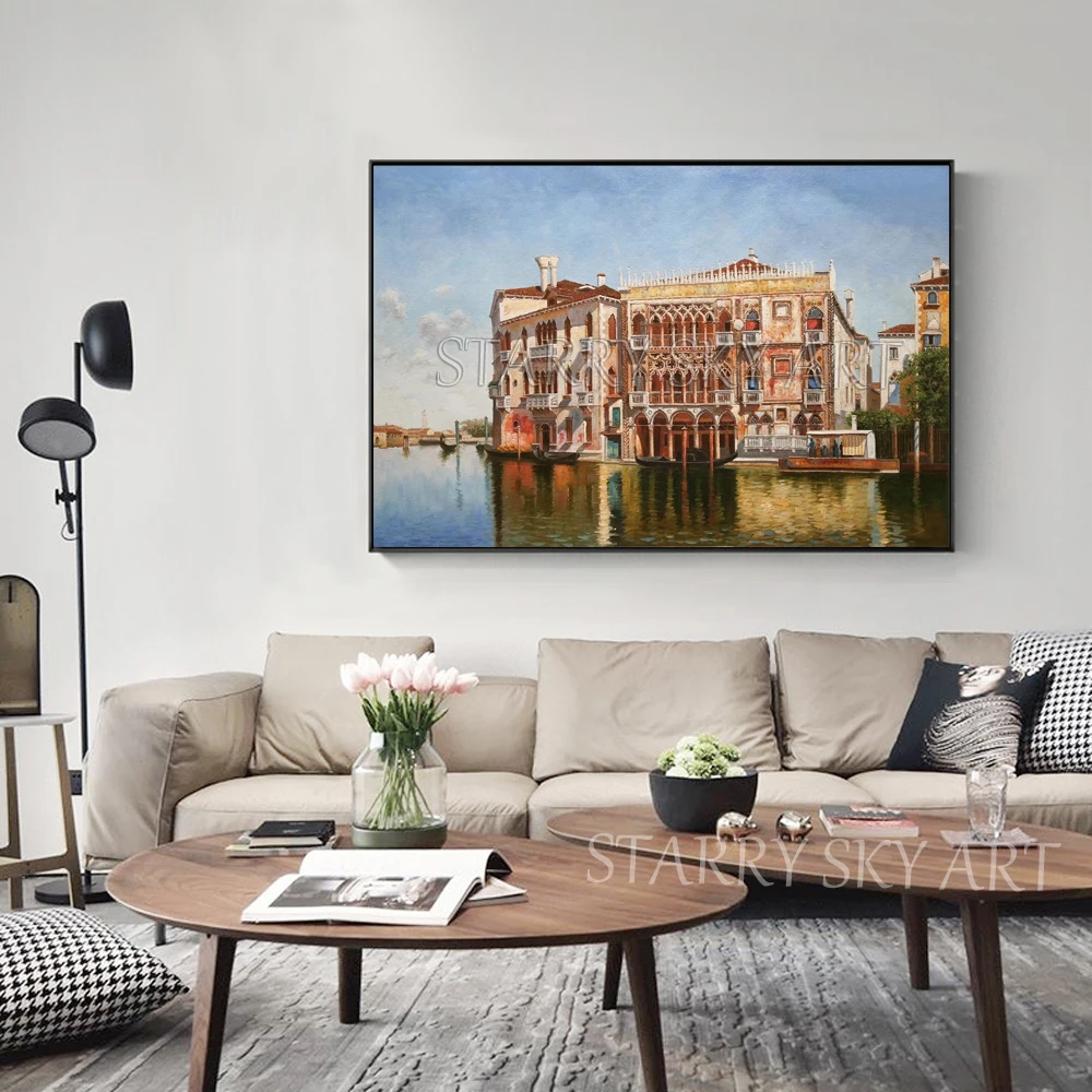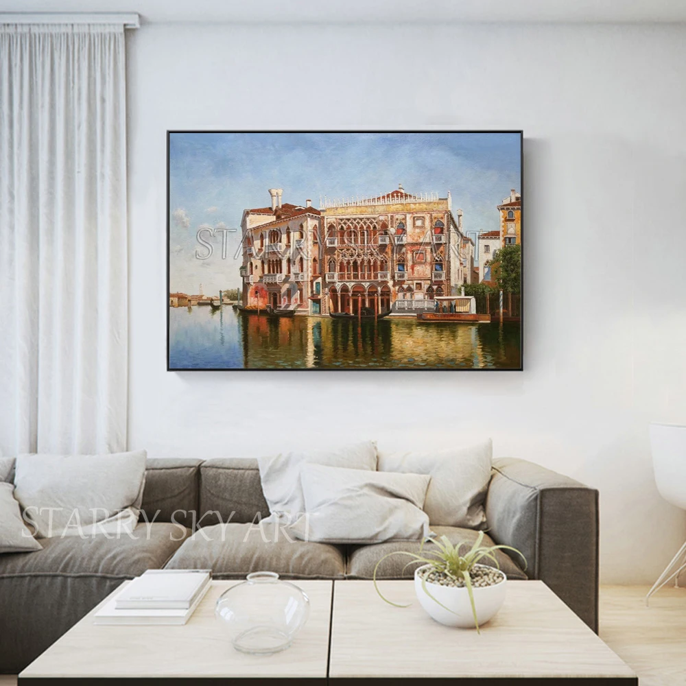 Special Offer Top Kunstenaar Handgeschilderde Hoge Kwaliteit Water Stad Olieverfschilderij Luxe Muur Art Europa Landschap Water Stad Olieverf Discount 42% Today!