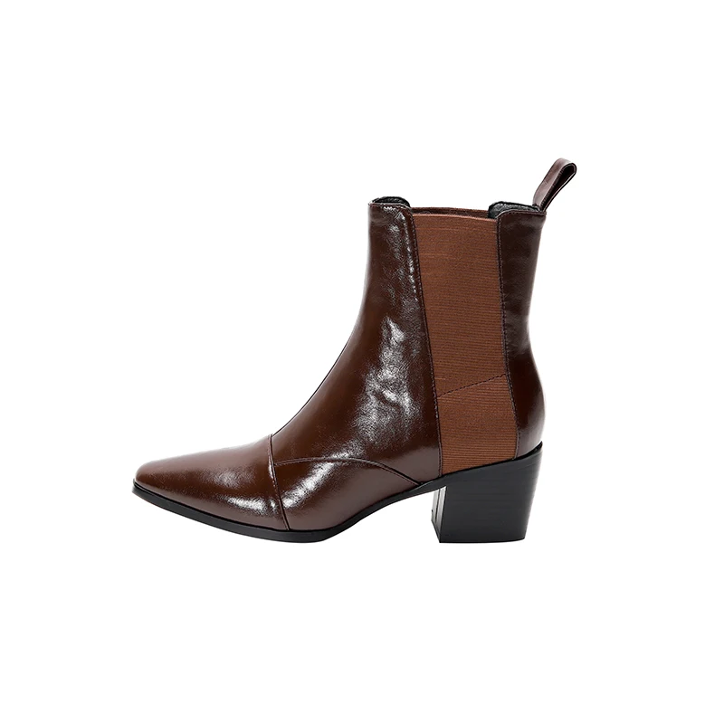 Product Name: Casual Real Leather Vierkante Teen 2020 Nieuwe Aankomen Enkellaars Stretch Zwart Bruin Hoge Hakken Dikke Motorlaarzen Vrouwen Schoenen
