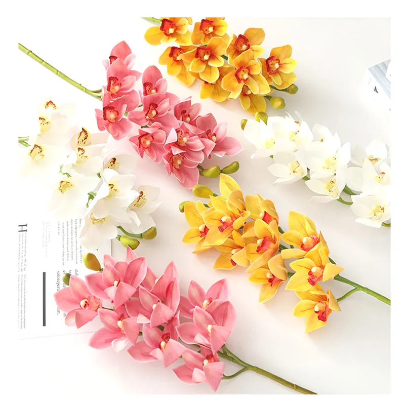 Product Name: Indigo-50 Pcs 3D Roze Cymbidium Grote Maat Orchideeën Nieuwe Stijl Real Touch Bloem Wedding Party Gratis Verzending