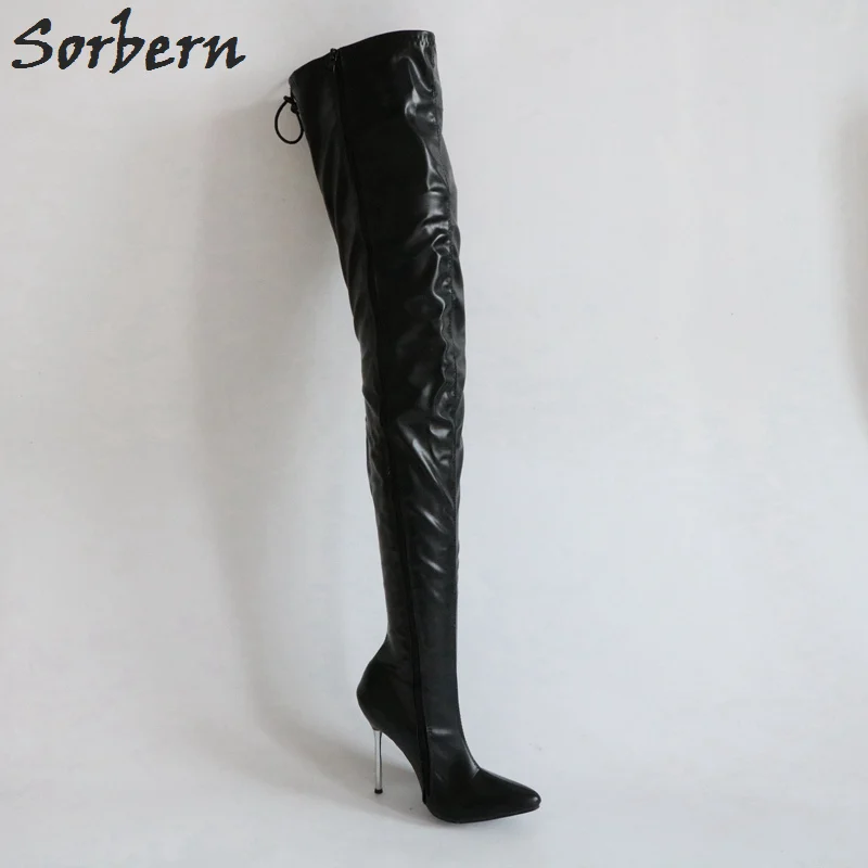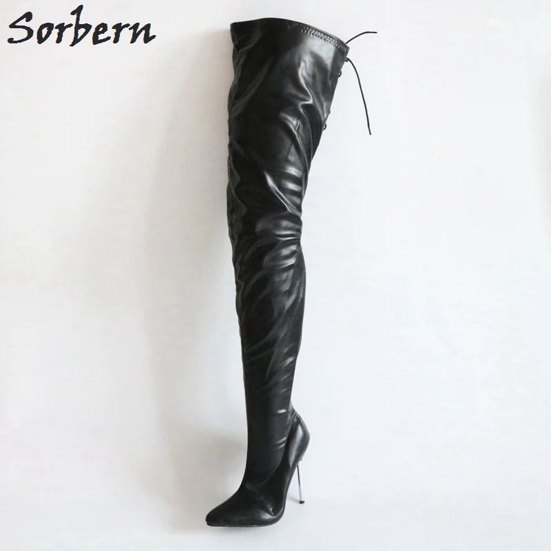 Special Offer Sorbern Sexy Fetish Hoge Hak Laarzen Vrouwen Over De Knie Stiletto 12 Cm Lace Up Back Uitgerekt Vrouwelijke Laarzen Lente Schoenen Maat 46 Discount 12% Today!