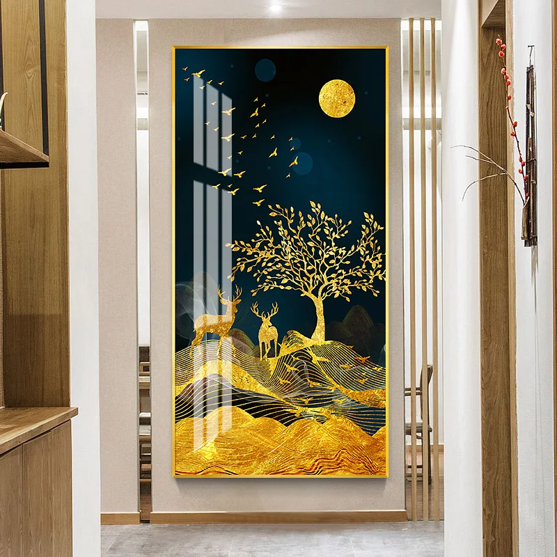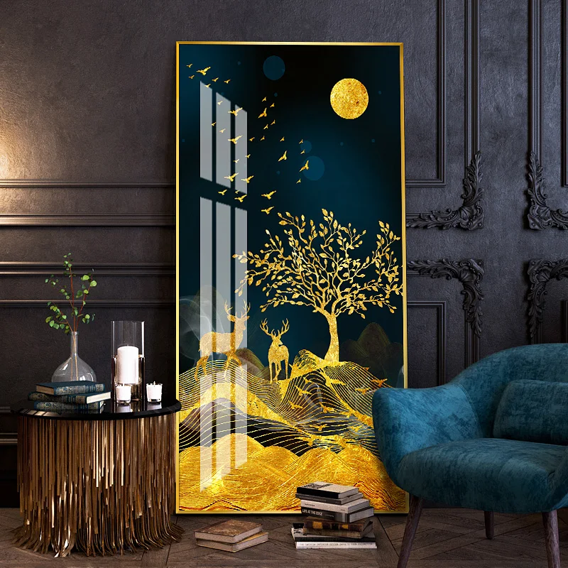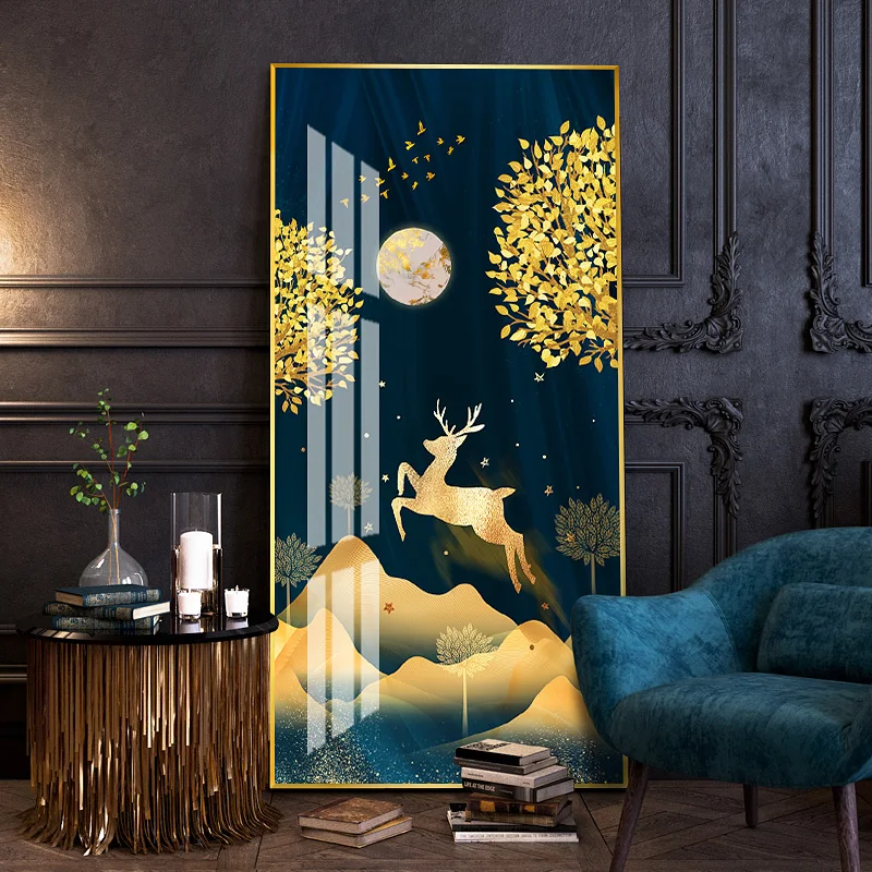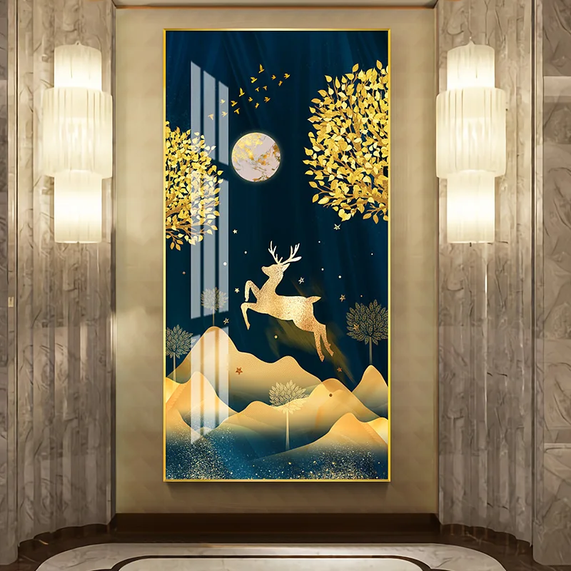 Product Name: Gouden Herten Creatief Schilderen Abstracte Kristal Porselein Schilderen Woonkamer Decoratieve Pictrues Home Art Wanddecoratie