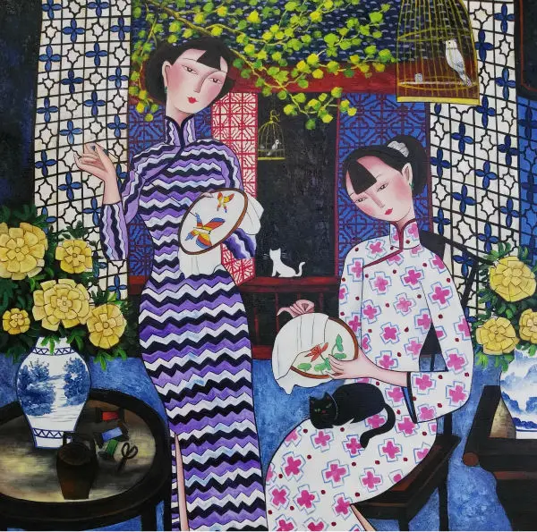 Product Name: Handgeschilderde Hoge Kwaliteit Canvas Schilderij Chinese Stijl Figuur Olieverfschilderij Wall Art Foto Schilderen Voor Woonkamer