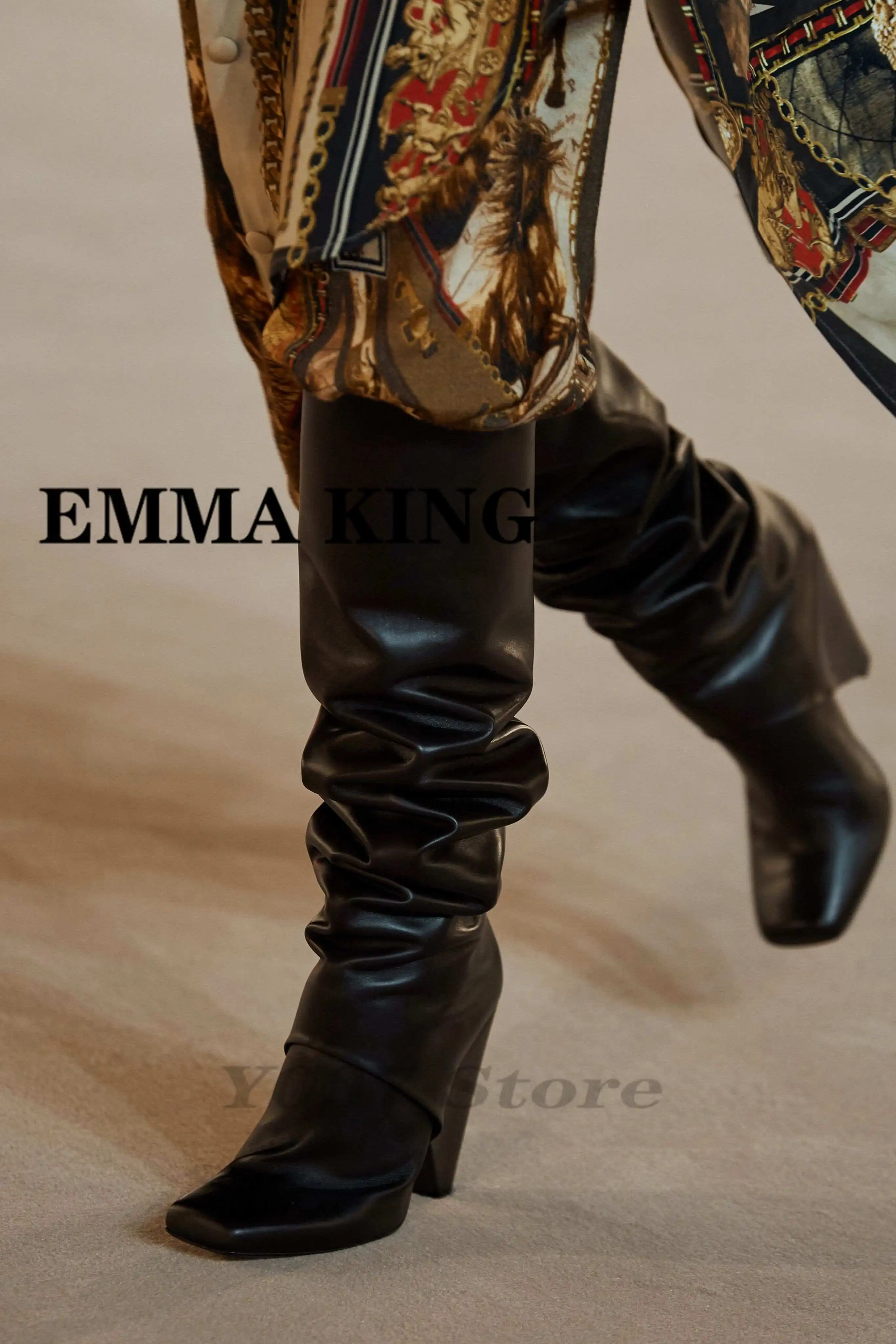 Special Offer 2021 Nieuwe Lakleer Dij Hoge Winter Laarzen Vierkante Teen Elastische Stretch Over De Knie Laarzen Runway Spike Hakken Vrouwen Laarzen Discount 34% Today!