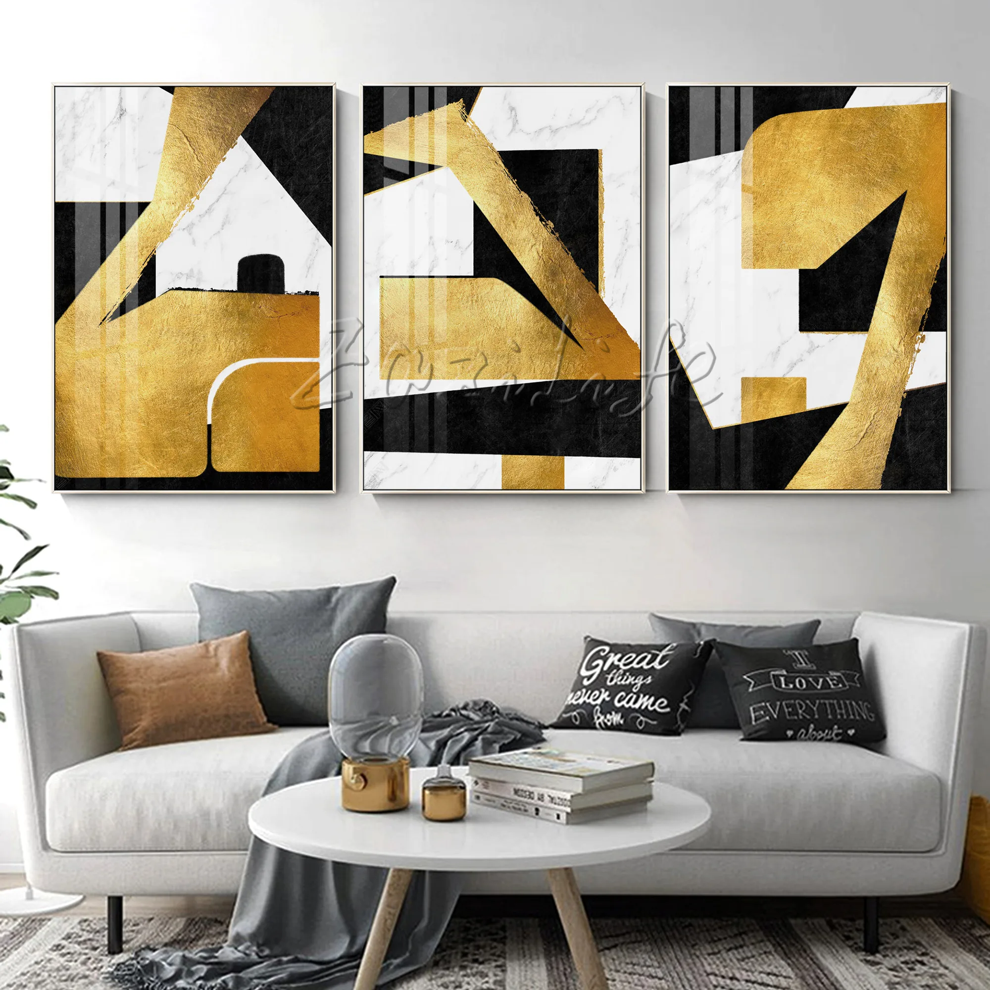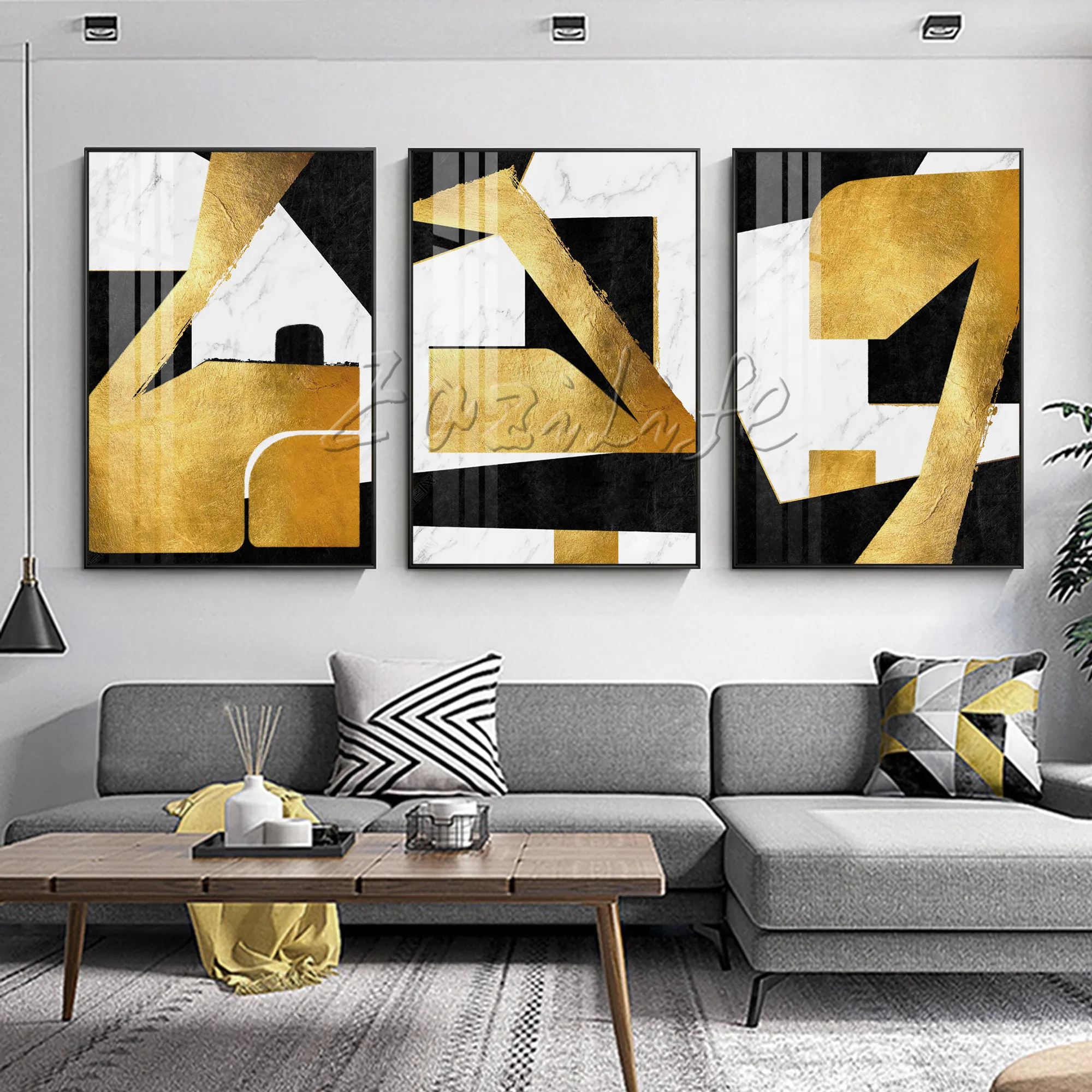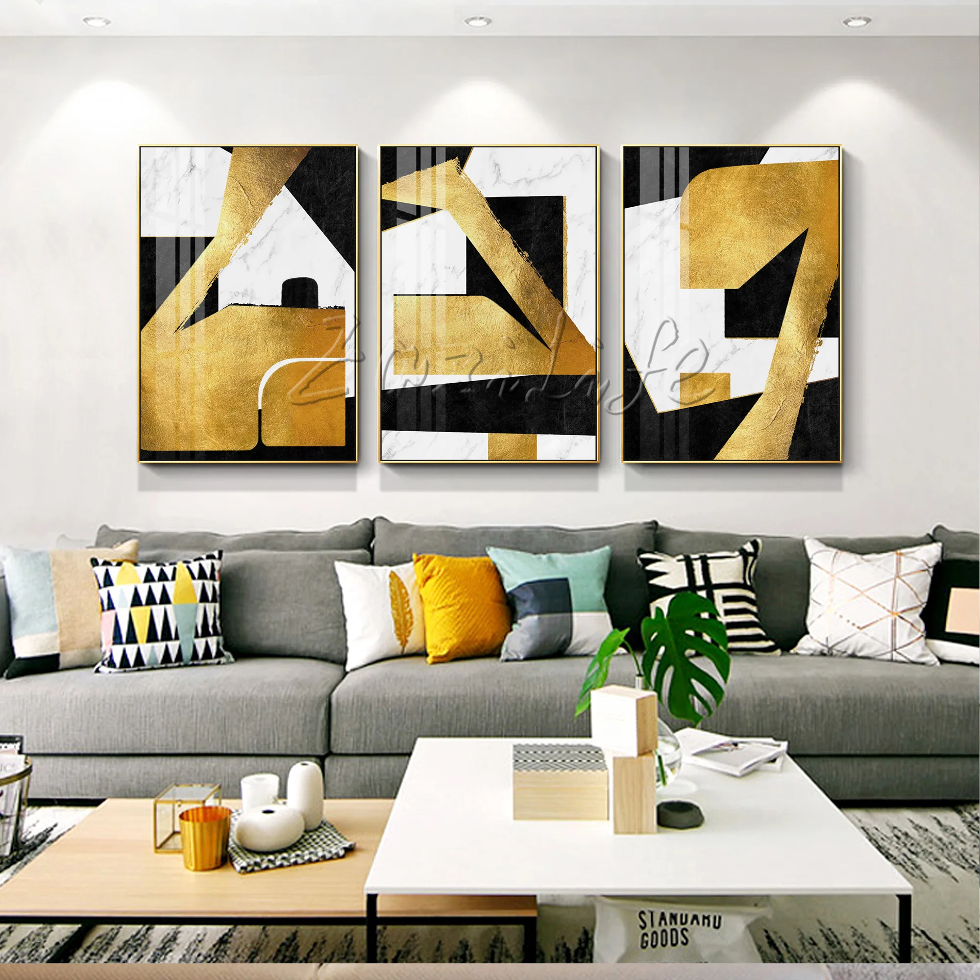 Special Offer Set Van 3 Abstract Moderne Handgeschilderde Geel Wit Zwart Olieverf Op Canvas Schilderij Voor Woonkamer Wall Art Decoratie Discount 0% Today!