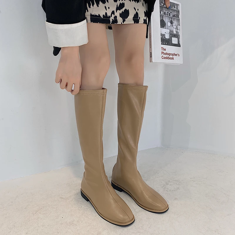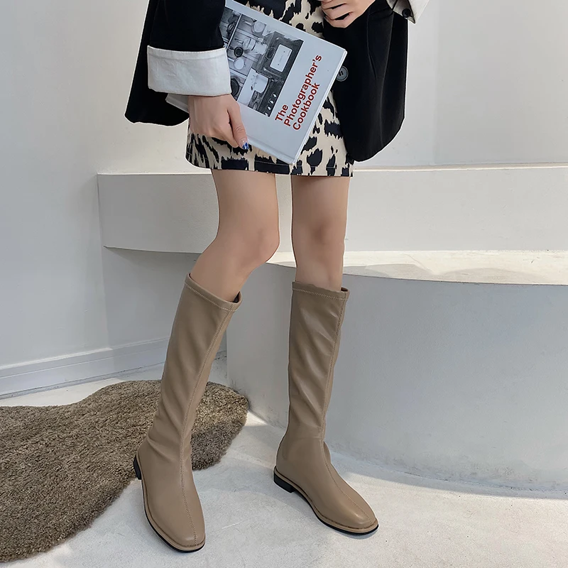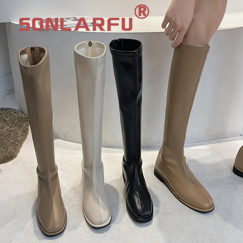 ♨️(OFF) Kopen Goedkoop Hoge Buis Zacht Leer Lange Laarzen Vrouwelijke Dikke Been Nieuwe Grote Omtrek Terug Rits Stretch Afslanken Knight Online