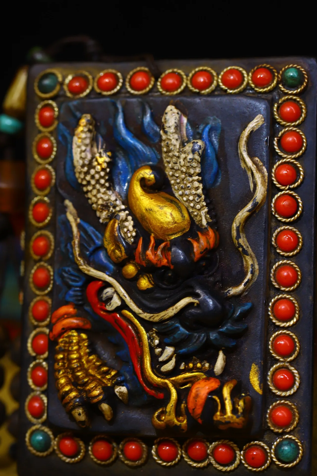 Product Name: 3 "Tibet Boeddhisme Natuurlijke Meteoriet Tracing Filigraan Mozaïek Gem Dzi Chinese Draak Standbeeld Lange Xizhu Hanger Amulet Magnetische