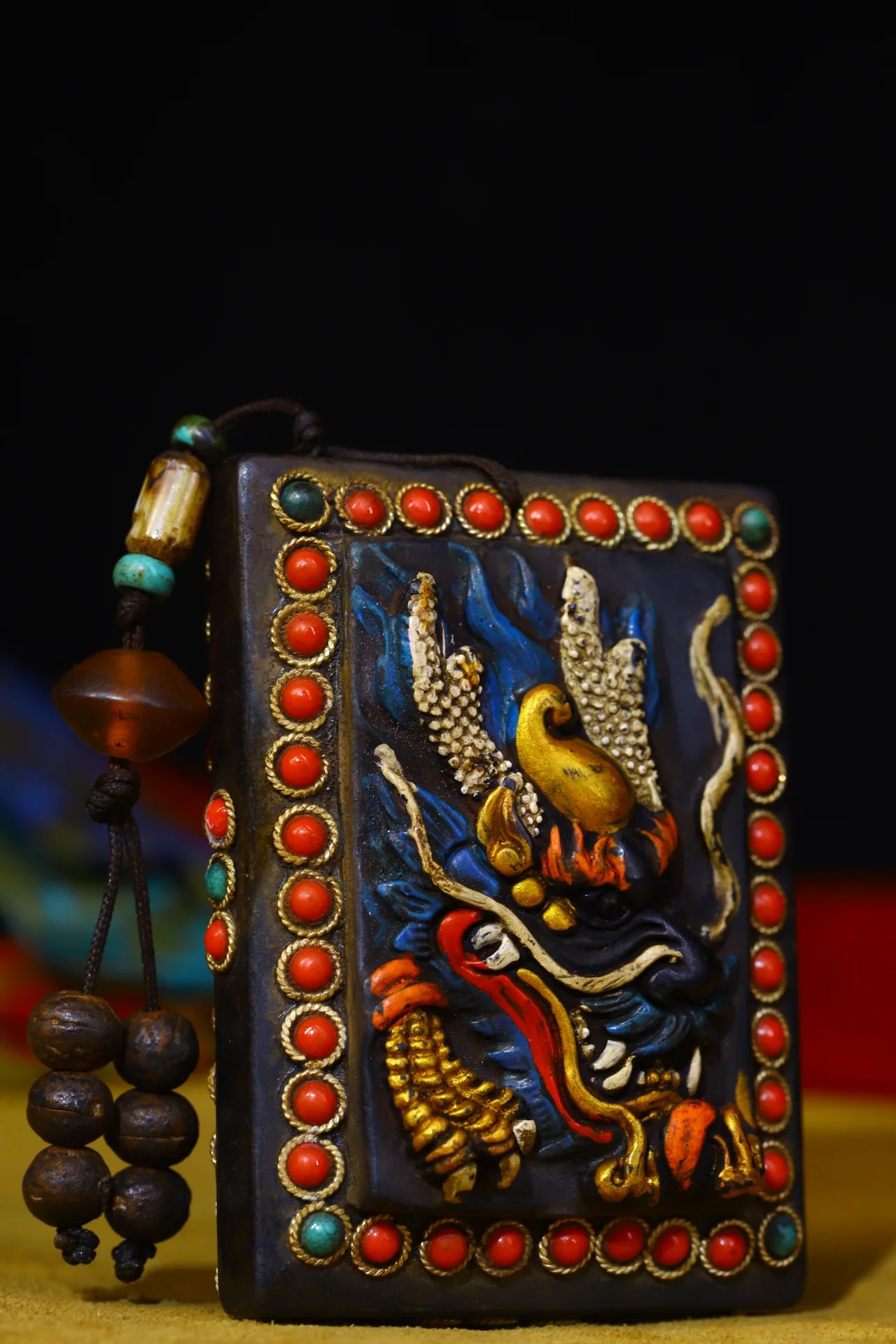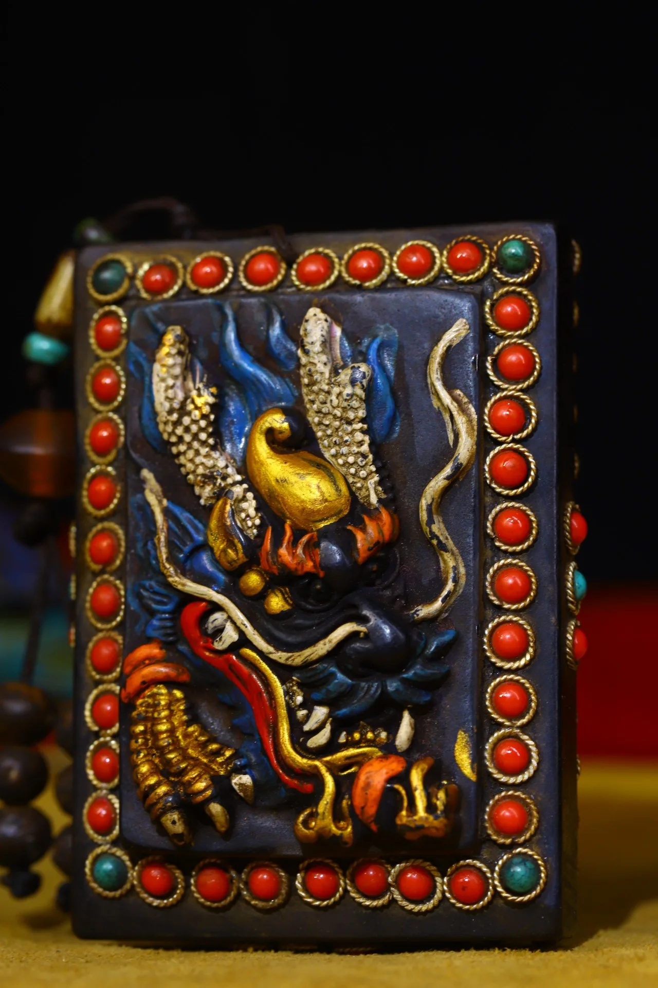 Special Offer 3 "Tibet Boeddhisme Natuurlijke Meteoriet Tracing Filigraan Mozaïek Gem Dzi Chinese Draak Standbeeld Lange Xizhu Hanger Amulet Magnetische Discount 15% Today!