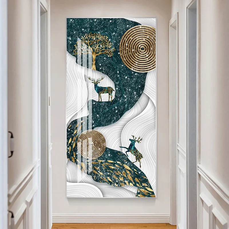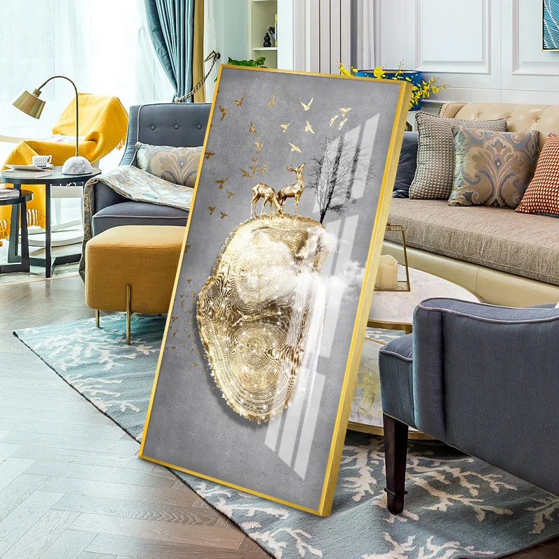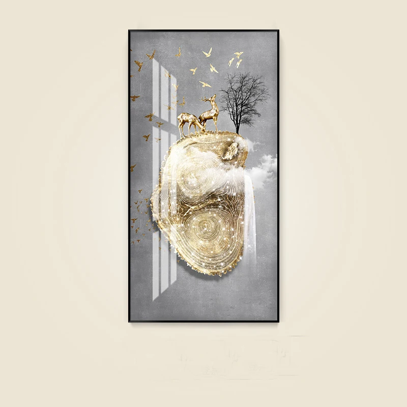 Product Name: Jaarlijkse Ring 5D Kristal Porselein Schilderen Diamant Inlay Schilderij Gouden Herten Modern Wall Art Foto Voor Woonkamer Home Decor