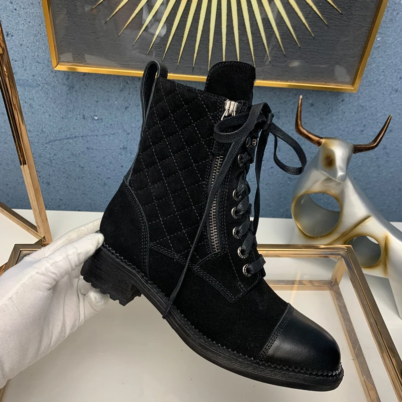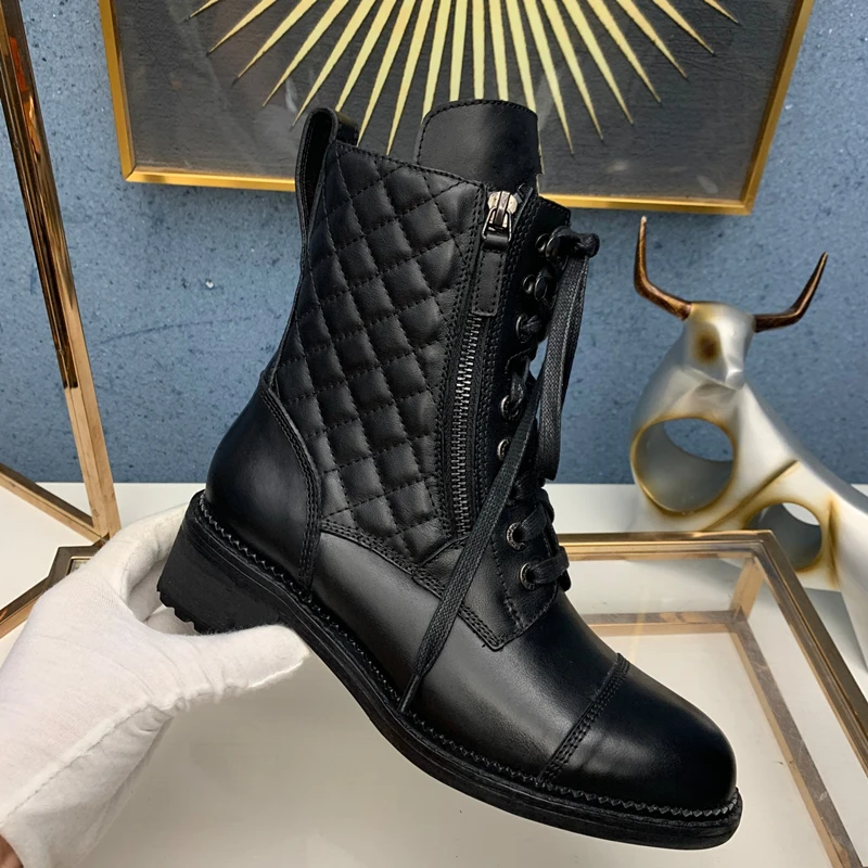 Product Name: Luxe Ontwerp Laarzen Vrouwelijke Vrouwen Schoenen Enkel 2020 Herfst Winter Lederen Dik Met Korte Laarzen Motorfiets Martin Schoenen
