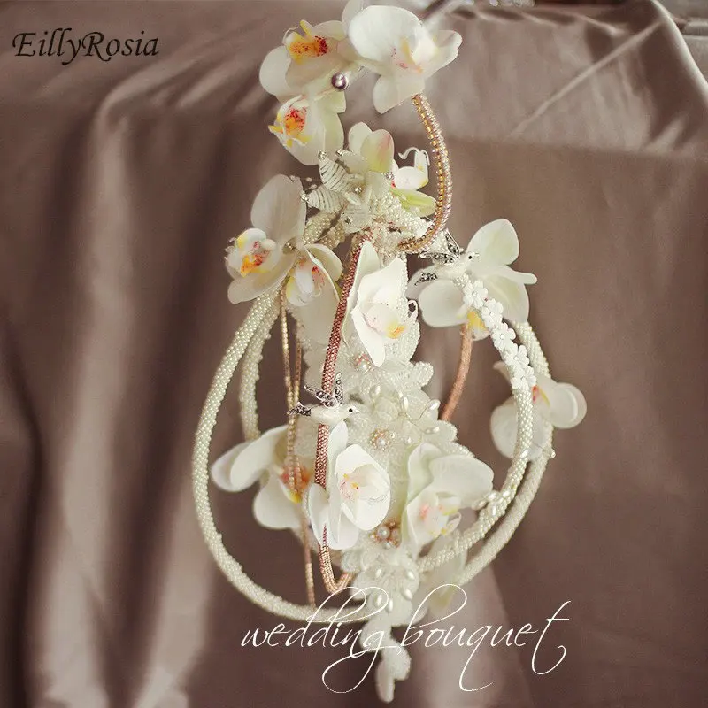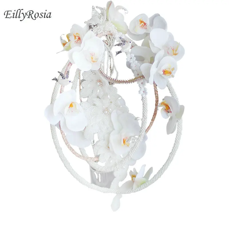 Product Name: Eillyrosia Uniek Ontwerp White Wedding Boeket Krans Hoepel Kunstmatige Bloemen Vlinder Orchidee Phalaenopsis Bruid Boeket