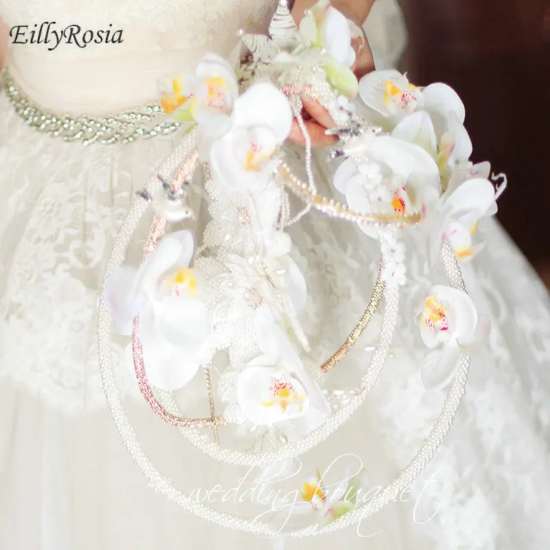 Special Offer Eillyrosia Uniek Ontwerp White Wedding Boeket Krans Hoepel Kunstmatige Bloemen Vlinder Orchidee Phalaenopsis Bruid Boeket Discount 30% Today!