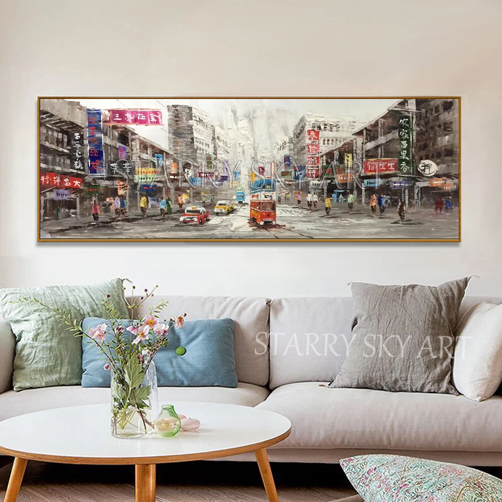 Product Name: Professionele Kunstenaar Handgeschilderde Hoge Kwaliteit Muur Kunst Oude HongKong Straat Olieverfschilderij Hong Kong Stad Olie Schilderen