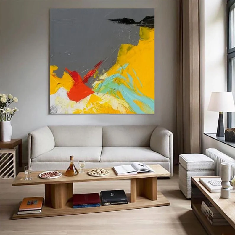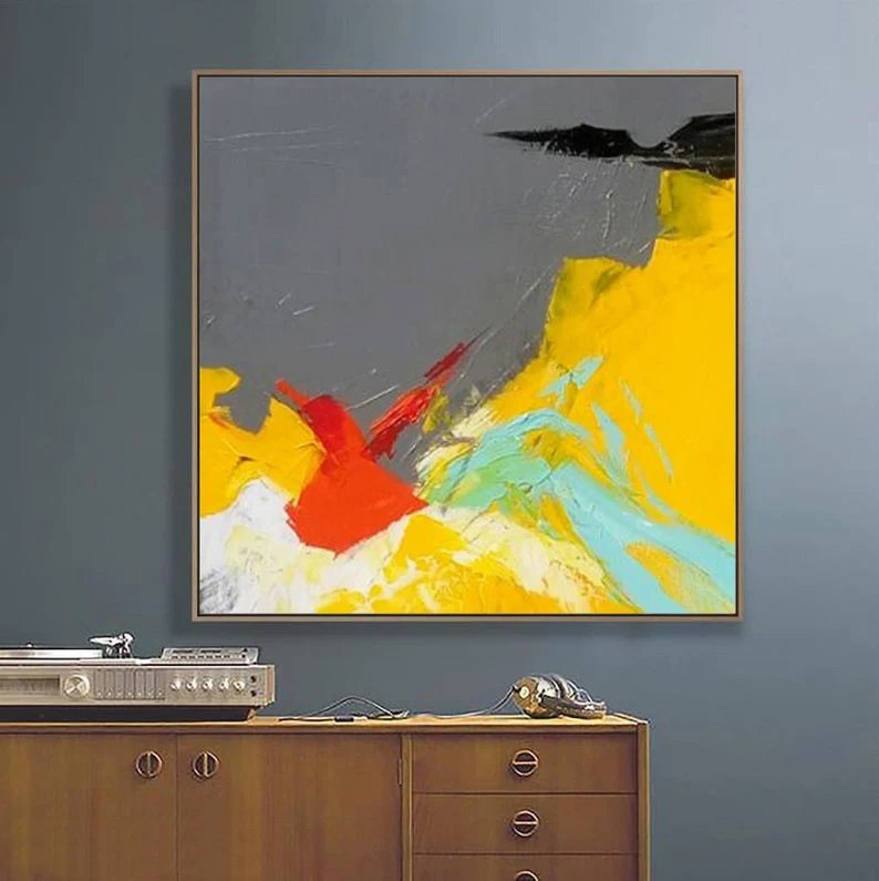 Product Name: Art Acryl Schilderen Kleurrijke Abstracte Schilderen Home Decor Grote Wall Art Schilderen Op Canvas Grijs Geel Blauw Olieverfschilderijen