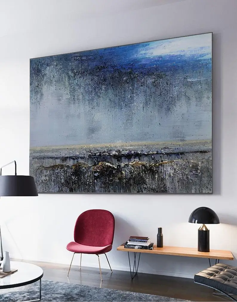 🌹(50%OFF) Kopen Goedkoop Blauwe Abstracte Art Grey Schilderen Originele Sky Landschap Olieverf Grote Wall Zee Canvas Prijs