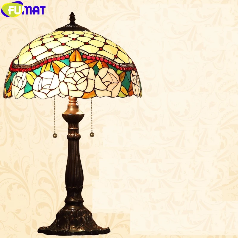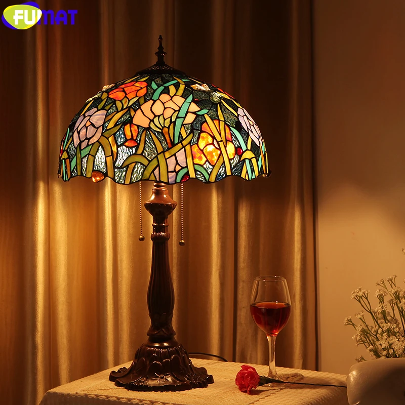 Product Name: Fumat Tiffany Stijl Bureaulampen Rose Bos Orchidee Bloem Gekleurd Glas Handwerk Art Decor Antieke Tafel Lichten 16 Inch Verlichting