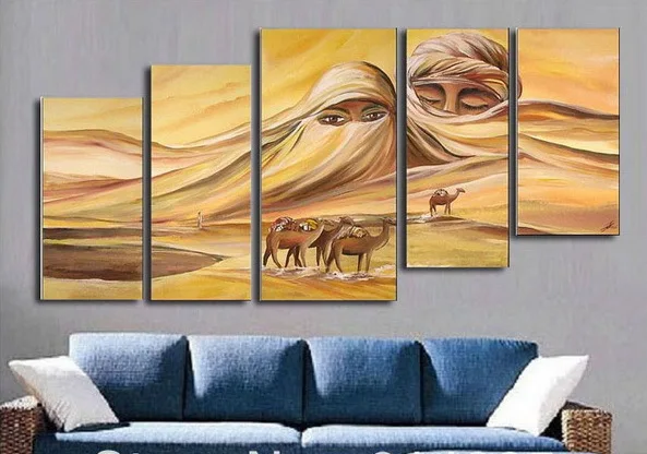 π (OFF) Beste Kopen Ingelijst 5 Panelen Enorme Wall Art, Kunst Olieverf, Canvas Doek, Afrikaanse Schilderijen, Landschap Midden Oosten Paar Goedkoop